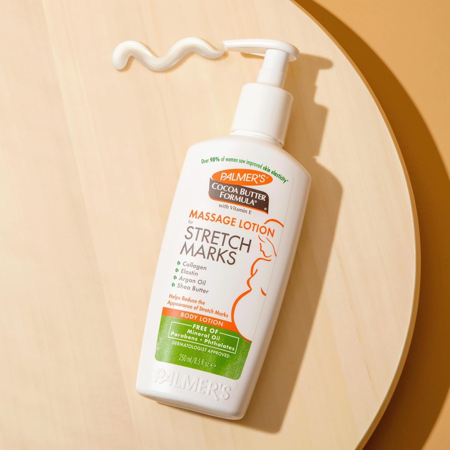 Palmer's Cocoa Butter Formula Massage Lotion For Stretch Marks, Pregnancy Skin Care, Belly Cream with Collagen, Elastin, Argan OIl and Shea Butter, 8.5 Ounces