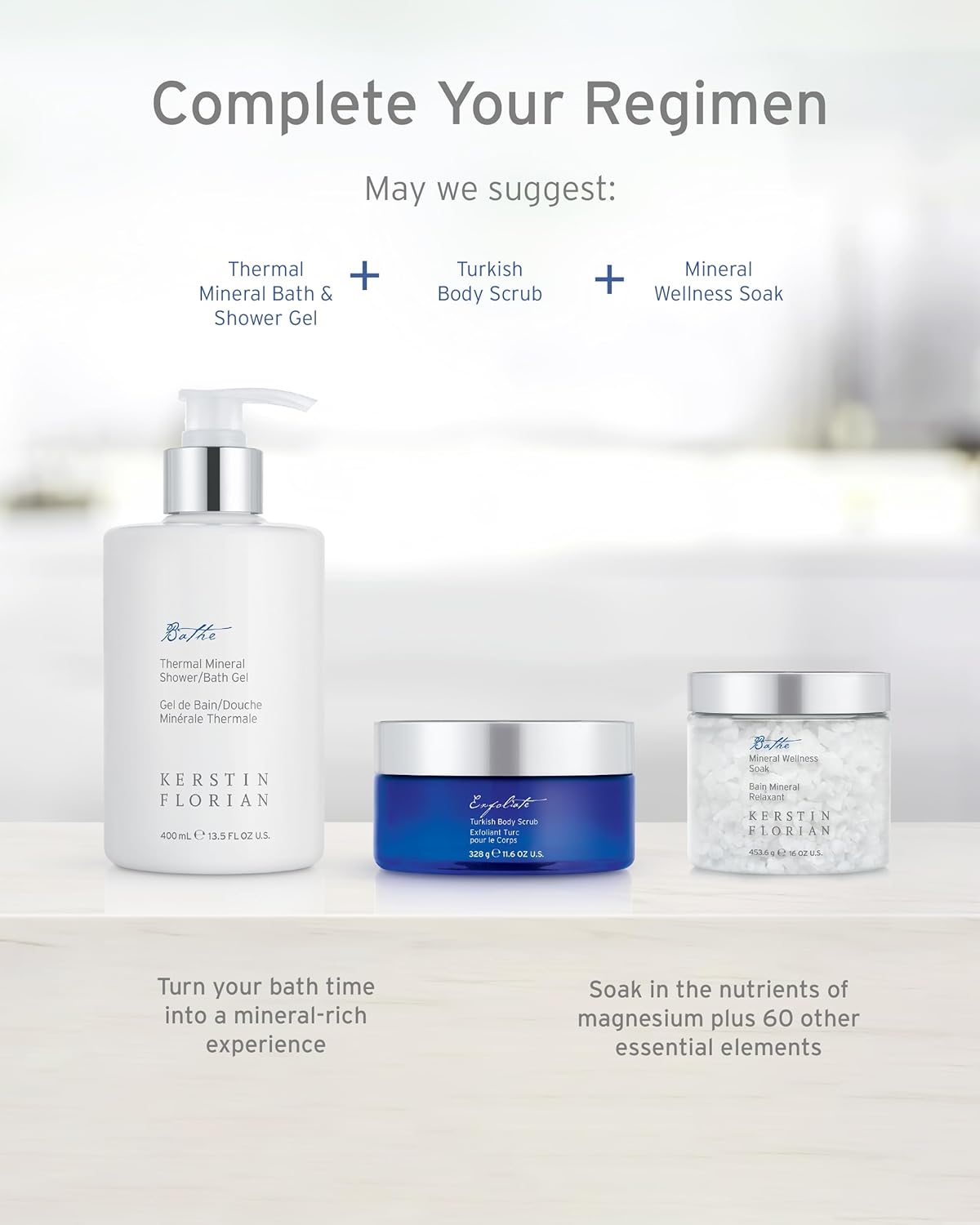 Kerstin Florian Aromatherapy Turkish Body Scrub | Eucalyptus Sea Salt Exfoliant for Smooth Skin | 11.6 oz
