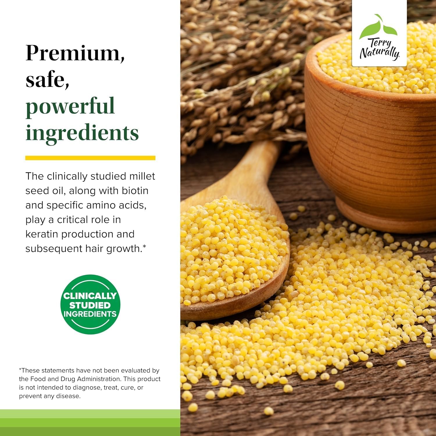 Terry Naturally Hair Renew Formula - Healthy Hair Growth Supplement with Biotin B Vitamins & Zinc - Millet Seed Oil for Keratin Production Support & Stronger, More Radiant Strands - 60 Softgels