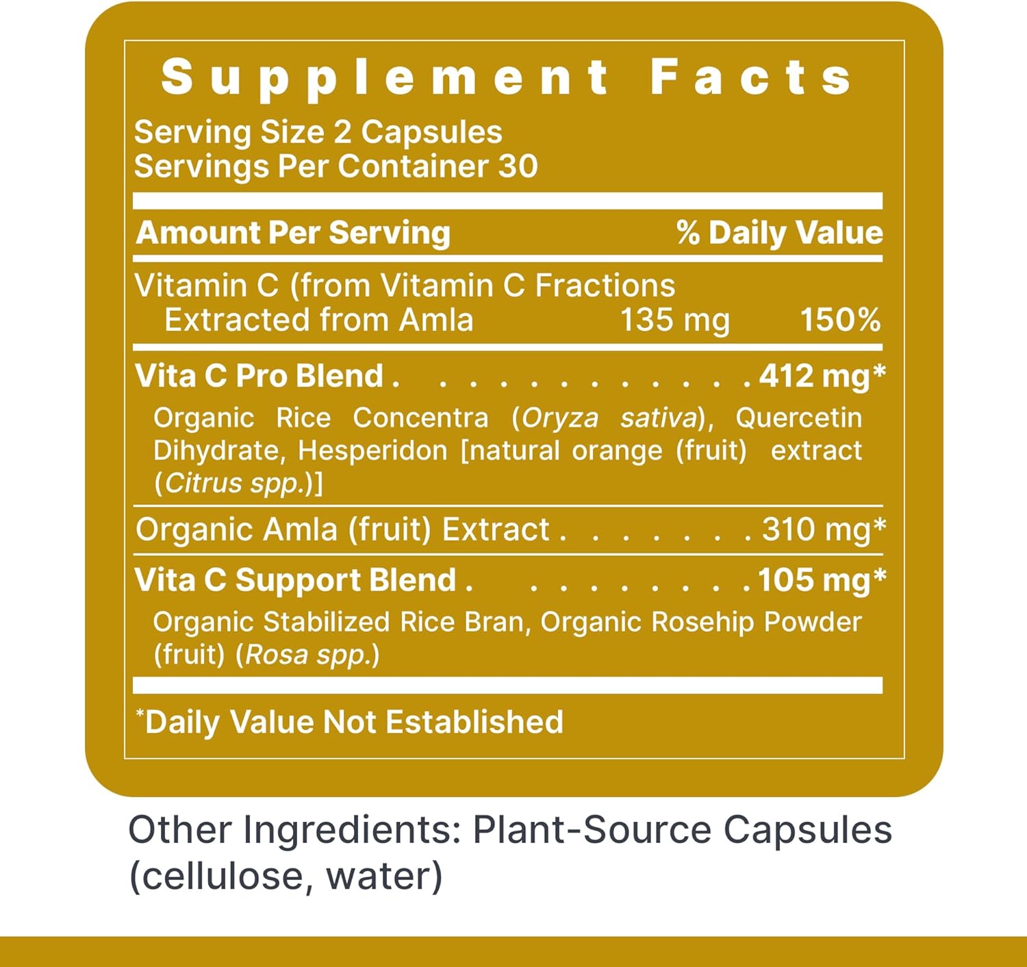- THE REAL VITAMIN C: We make our Vitamin C without ascorbic acid. Instead, we use Amla extract, an herb prized in Ayurveda which can provide 10 to 30 times the vitamin C content of a typical orange!