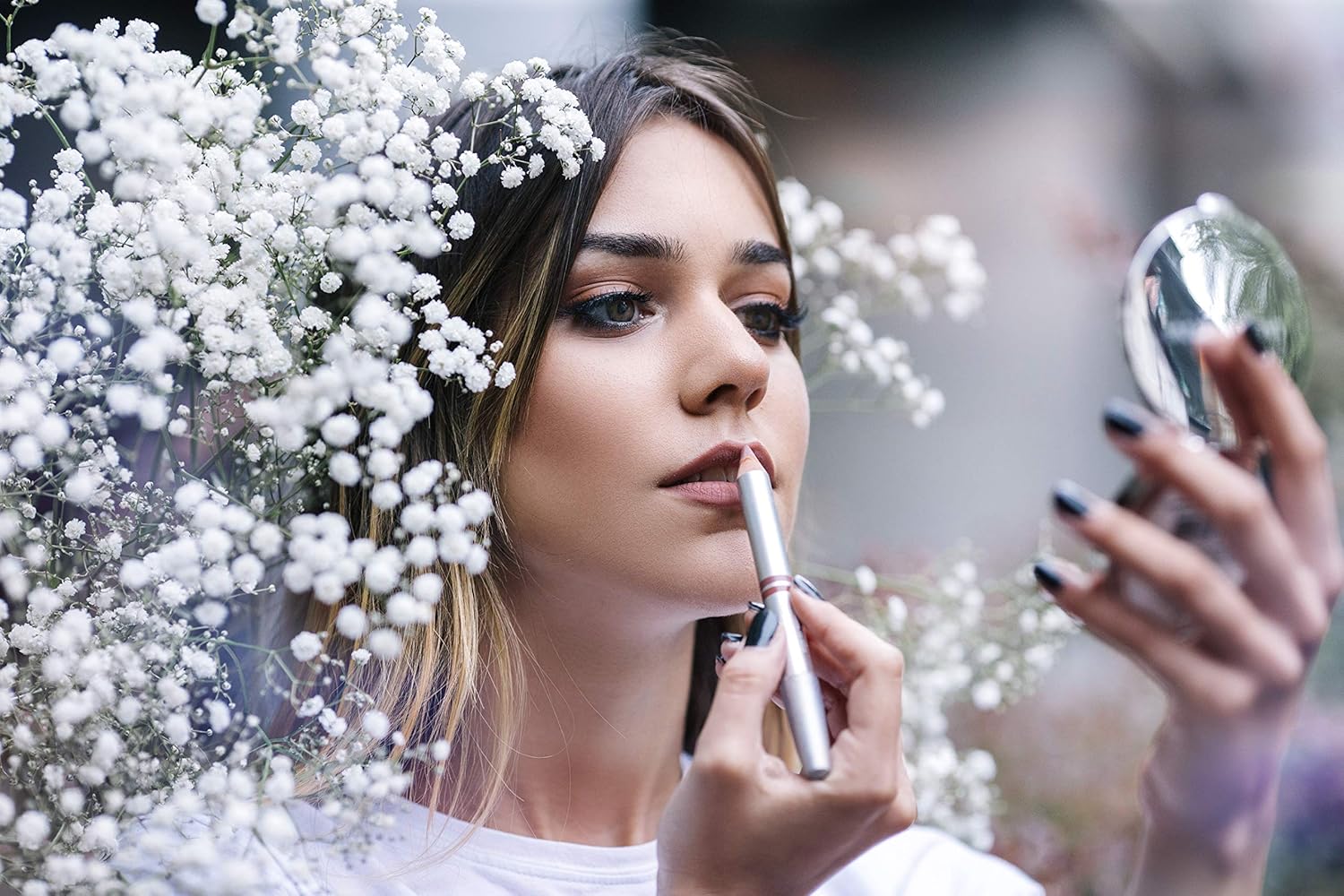 The Fancii Cami Handheld Travel Makeup Mirror features LED lighting, 1X/5X magnification, and a rechargeable, extra-large design—perfect for flawless makeup anywhere.
