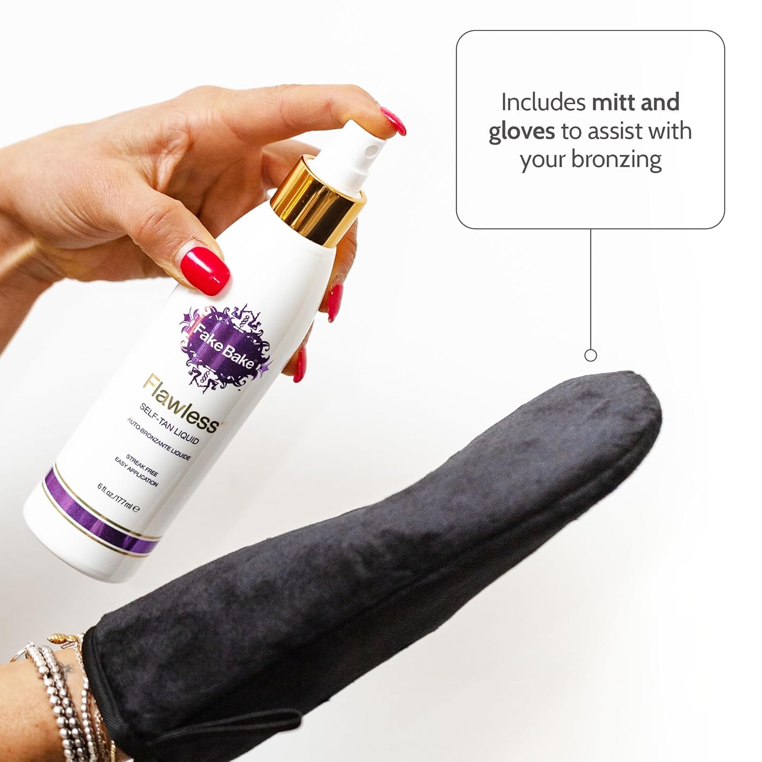 Fake Bake Flawless Self-Tanning Liquid Streak-Free, Long-Lasting Natural Glow For All Skin Tones - Sunless Tanner with Professional Mitt For Easy Application, Black Coconut Scent - 6 oz (Pack of 2)