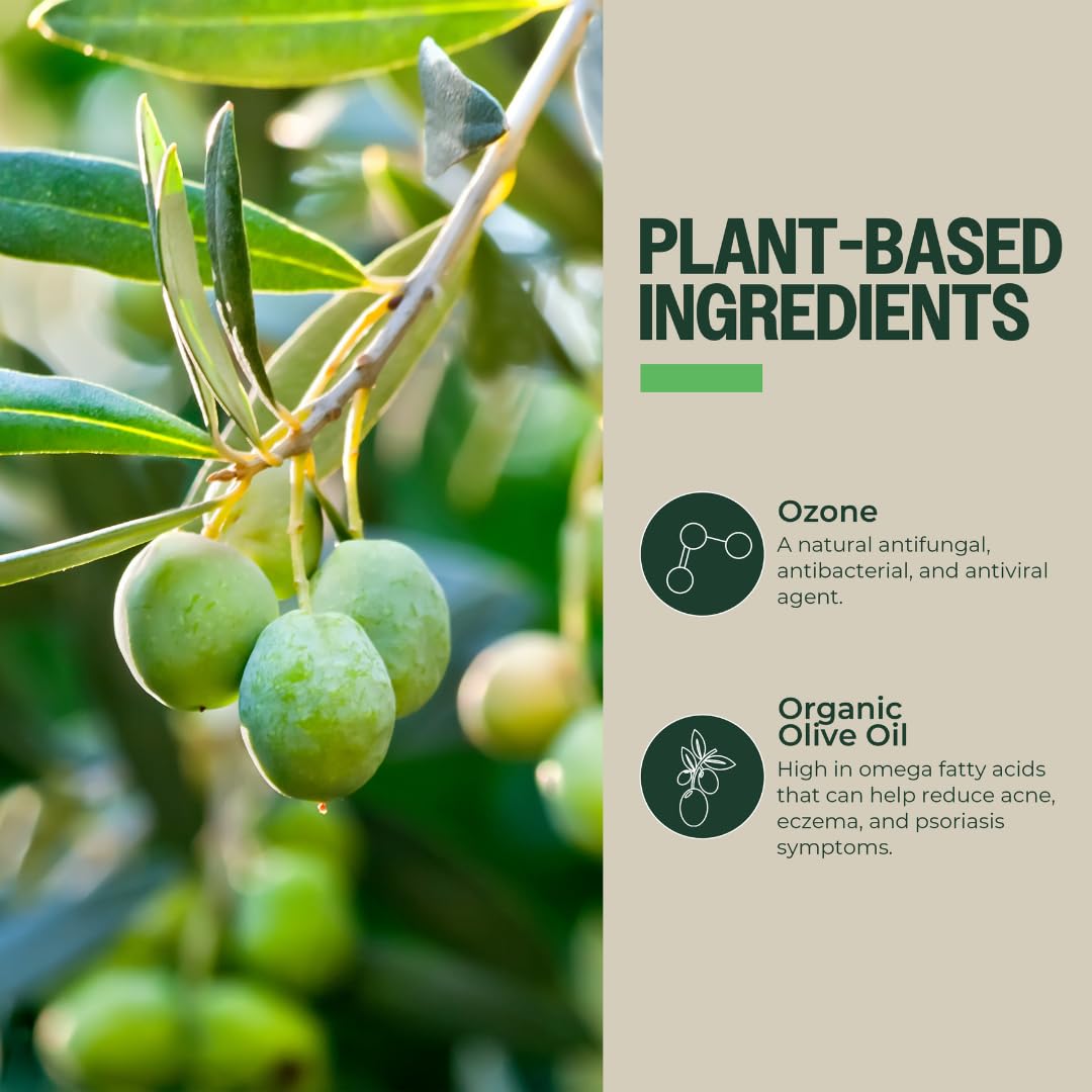 - Ultra-Pure Ozone-Infused Olive Oil: The power of ozone from ultra-pure oxygen enhances the natural benefits of this medium-strength certified organic olive oil, offering a versatile, medium-absorption salve for many skin concerns