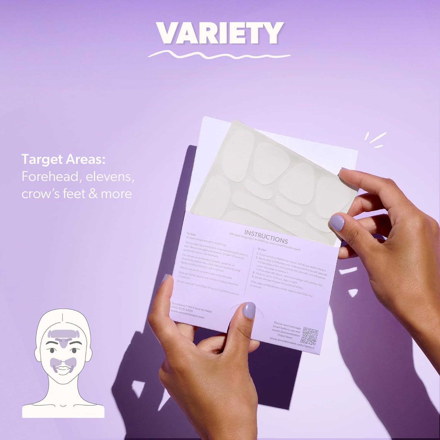 - LIGHTWEIGHT & TRANSPARENT: Smoothies facial wrinkle patches are lightweight and comfy, yet strong enough to address deep lines. Our adhesive wrinkle patches have a see-through design, so you can ensure the patches are smoothing your skin.