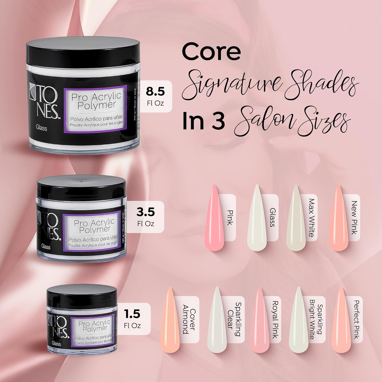 Tones Pro Acrylic Nail Powder, Glass (Clear), (3.5 Fl Oz) - Long-Lasting & Non-Yellowing Polymer for Salon Quality Nail Extensions & 3D Art