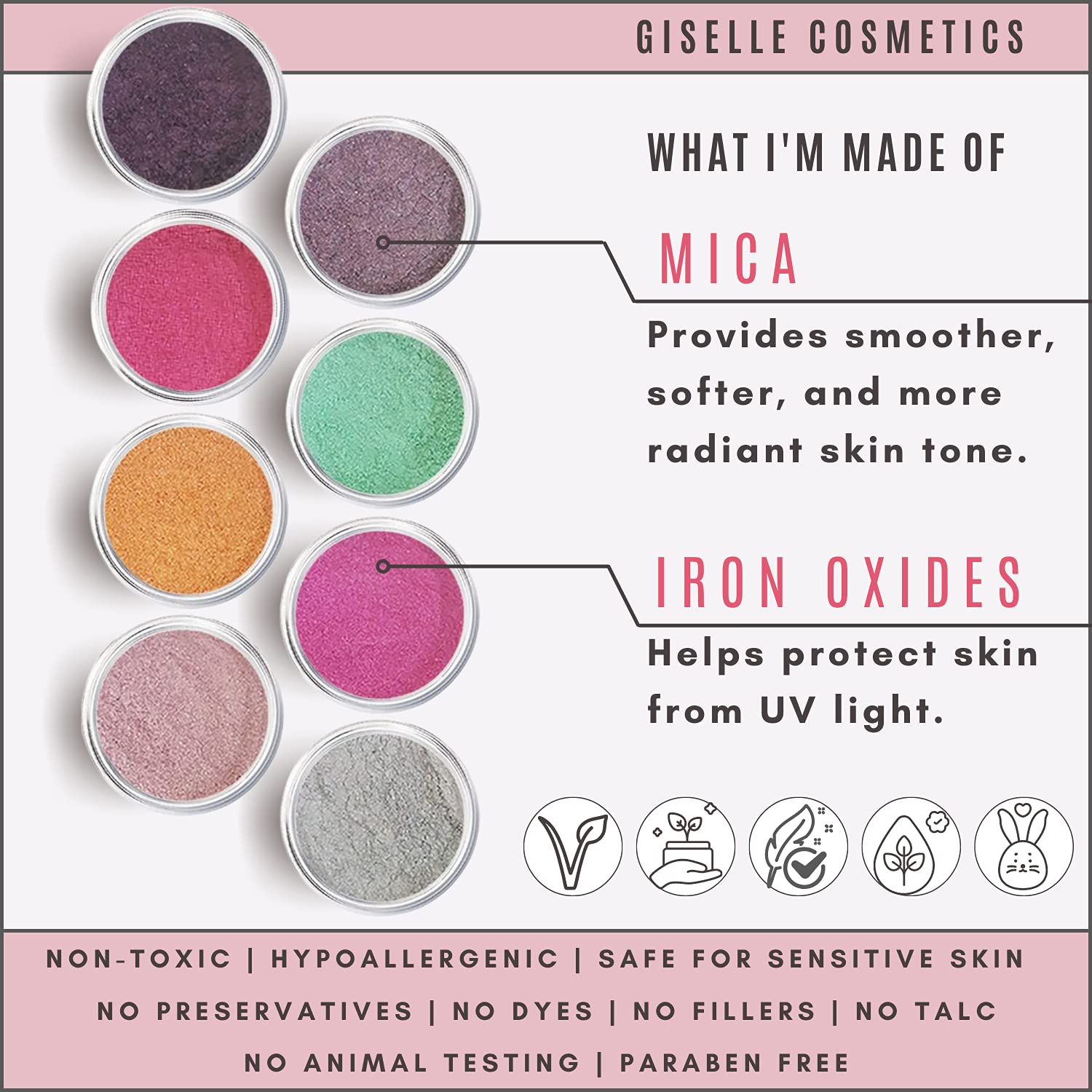 - Pigmented: Pure and uncut, our shimmering eyeshadow is talc, salicylate, and paraben free and non-toxic