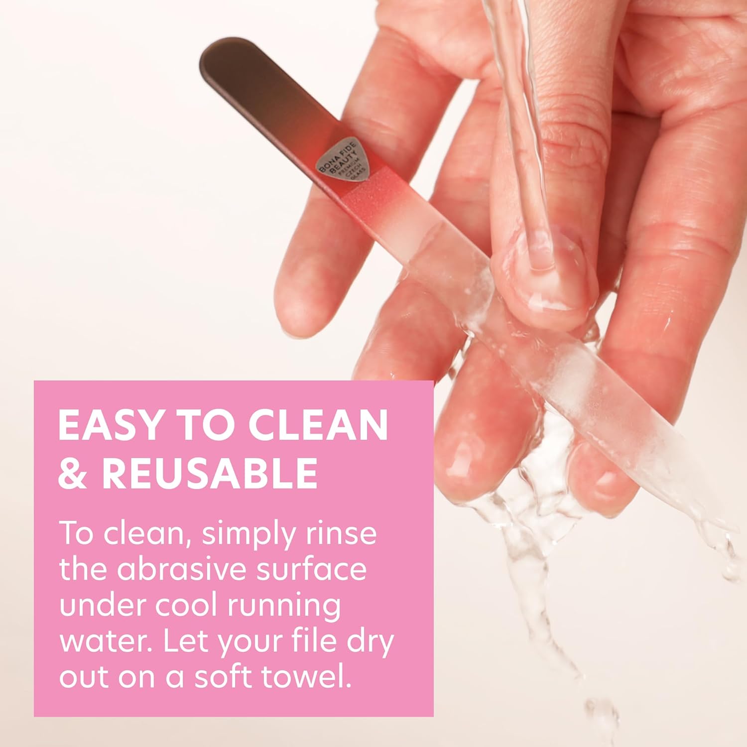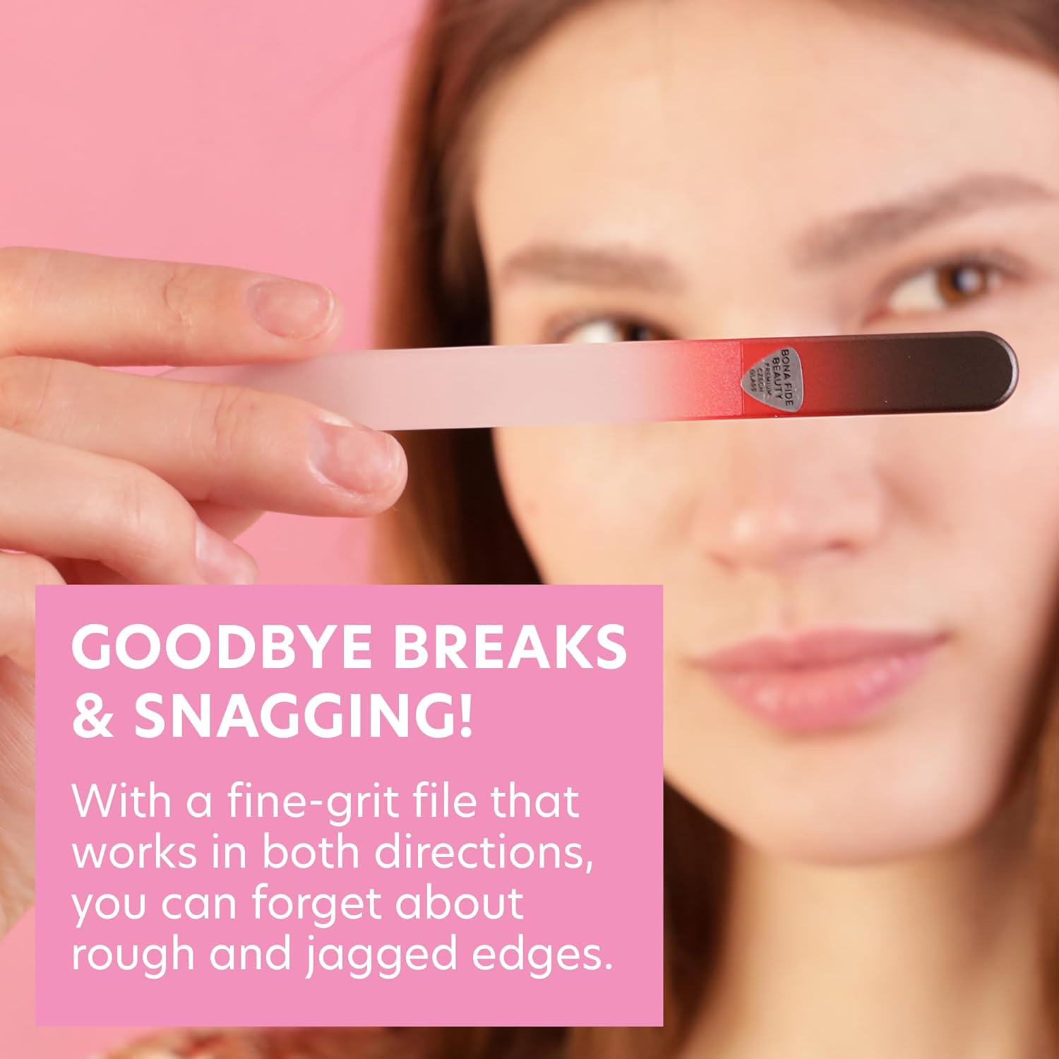 - Smooth and Shape with Glass Nail Filers: forget traditional harmful nail files that tear, shred & damage the keratin layers of your nails. Bona Fide Beauty Czech glass files seal the keratin layers, leavings nails smooth with no jagged edges.