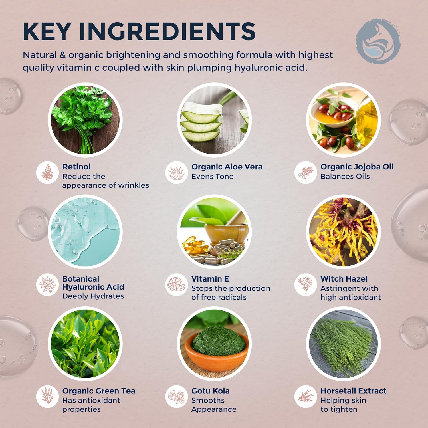 - Special Ingredients : Gotu Kola, Horsetail Extract, Hyaluronic Acid, Organic Jojoba Oil