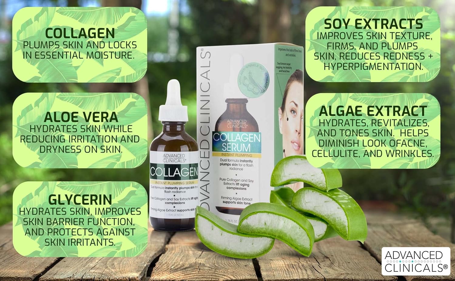 - COLLAGEN SERUM – Collagen is a protein found naturally in our skin, bones, & connective tissue, and it plays a crucial role in maintaining our skin's structure, elasticity & firmness. As we age, our body's natural collagen production declines, which can lead to the appearance of fine lines, wrinkles, & sagging skin. Advanced Clinicals Collagen Serum for face helps boost skin elasticity, restore collagen within your skin, and hydrate + nourish your skin, leaving it feeling more soft, supple, & ra