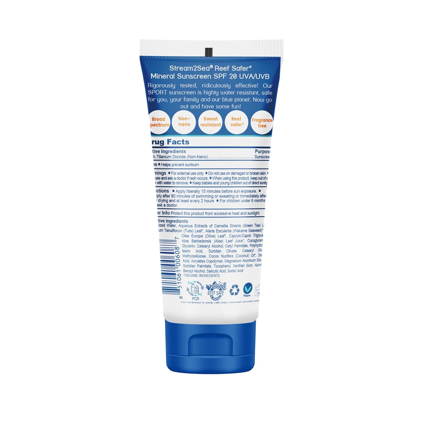 STREAM 2 SEA SPF 20 Biodegradable Mineral Sunscreen, 3 Fl oz Paraben Free Non Greasy and Moisturizing Reef Safe Sunscreen For Face and Body Protection Against UVA and UVB