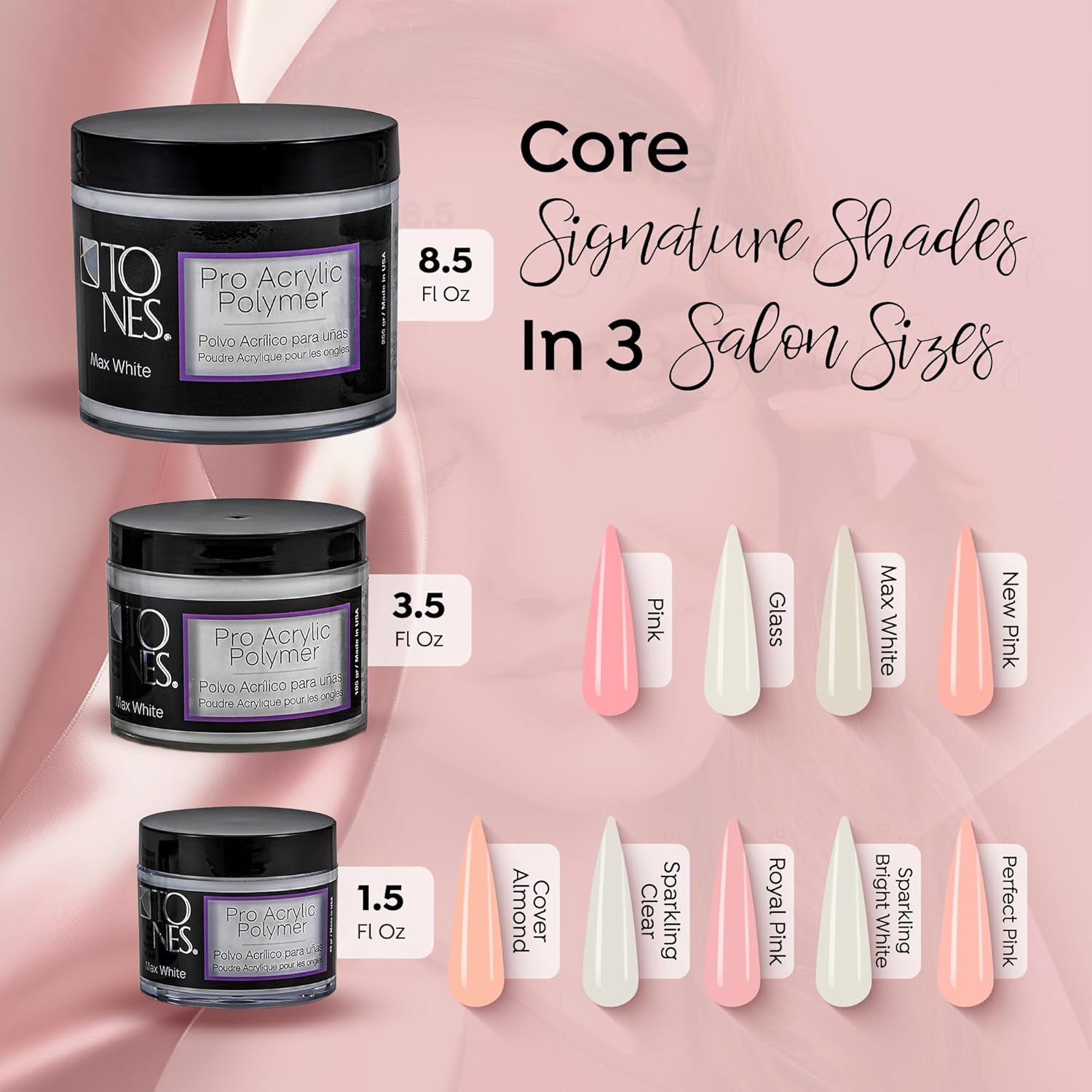 Tones Pro Acrylic Nail Powder, Max White (Creamy, Soft Off-White), (1.5 Fl Oz) - Long-Lasting & Non-Yellowing Polymer for Salon Quality Nail Extensions & 3D Art