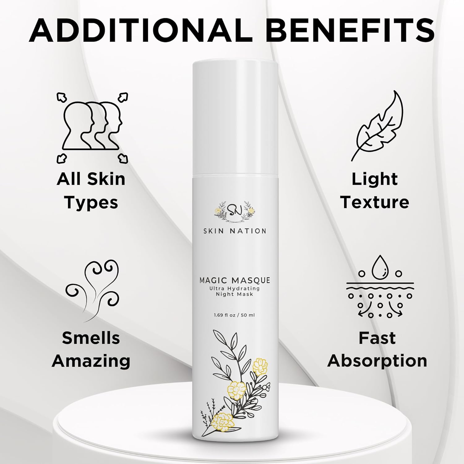 Skin Nation Magic Masque, Hydrating Night Mask with Hyaluronic Acid & Botanicals, Plant-Based Overnight Mask for Dry Skin, Smooth Texture & Radiant Glow, 1.69 fl oz