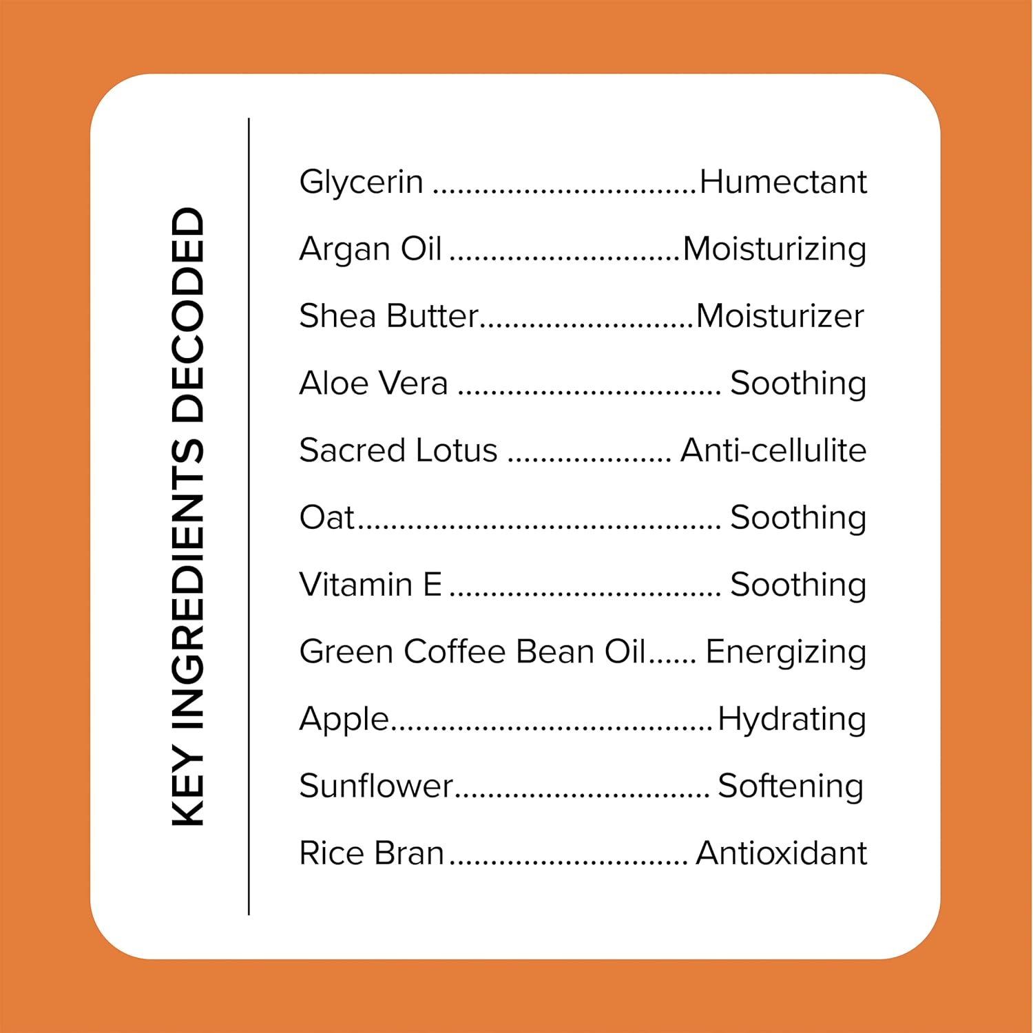 - DEEP HYDRATION FOR HEALTHIER SKIN β Infused with Lotus Extract, Aloe Vera, & Coffee Bean Oil for instant hydration to the skin while increasing skin's elasticity + complexion. Lotus Extract contains Vitamin C, Vitamin B complex, & antioxidants that help nourish and brighten your complexion. Coffee Bean extracts cleanse and purify your skin by reducing redness and puffiness while also tightening and exfoliating the skin.