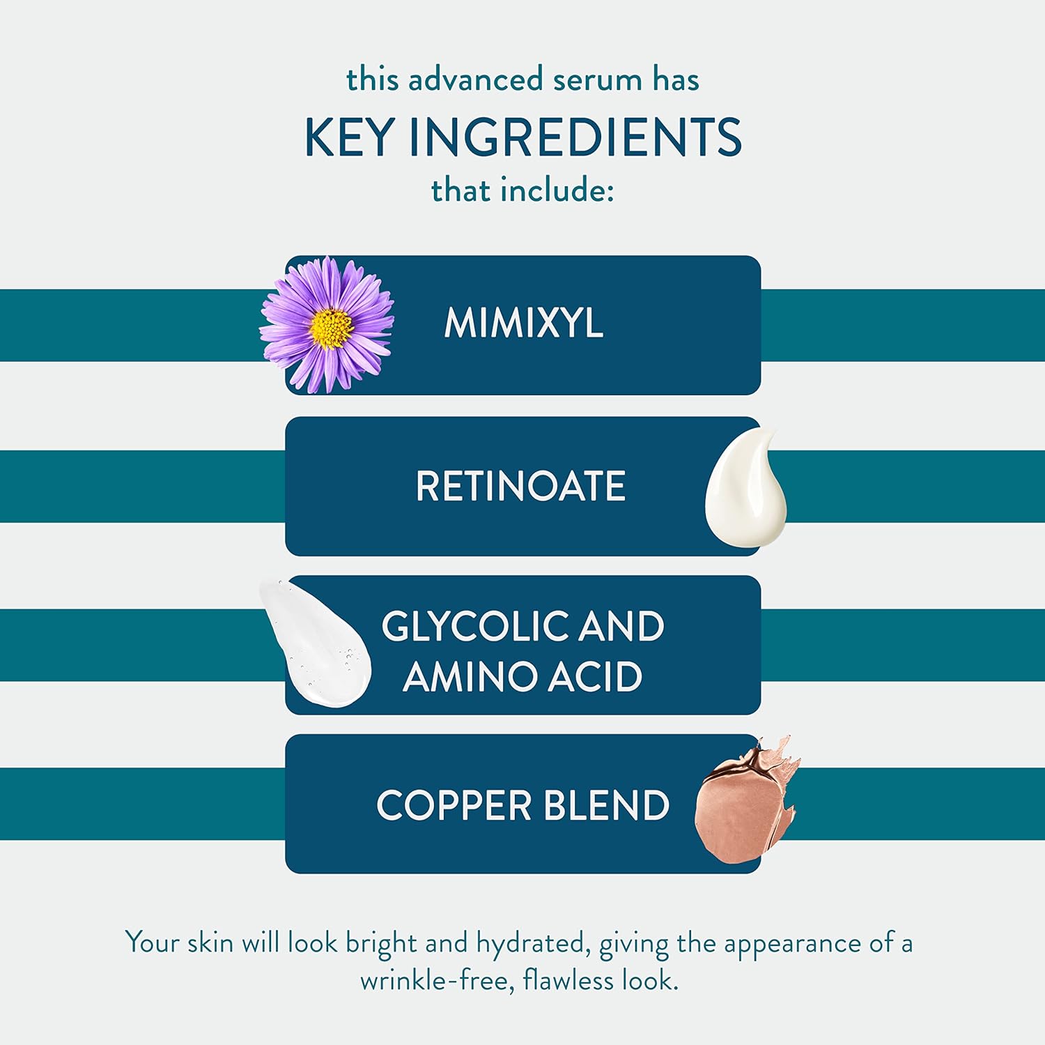 - SOOTHING INGREDIENTS: This nighttime serum is made with Retinoate, an ester of retinoic acid designed to reduce surface roughness. The included purple orchid and amino-acid-and-copper blend smooth the appearance of fine lines for a plump, fresh look.