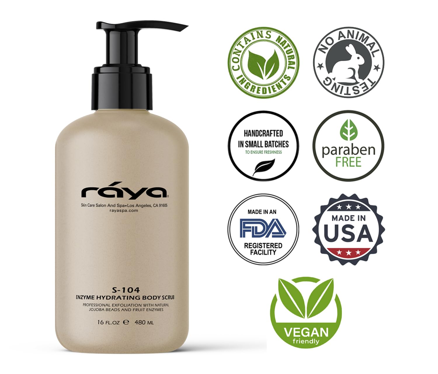 RAYA Enzyme Hydrating Body Scrub 16 oz Pineapple Scent (S-104) | Gentle and Exfoliating Body Scrub | Made with Seaweed, Jojoba Beads, and Fruit Enzymes