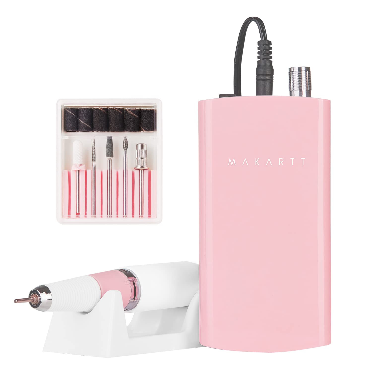 Makartt Nail Drill Professional, Rechargeable Nail E File 30000RPM Electric Nail Drill, Malory Pink Portable Gel Nail Remover Machine with Nail Drill Bits & Sanding Bands for Manicure Salon Home Use