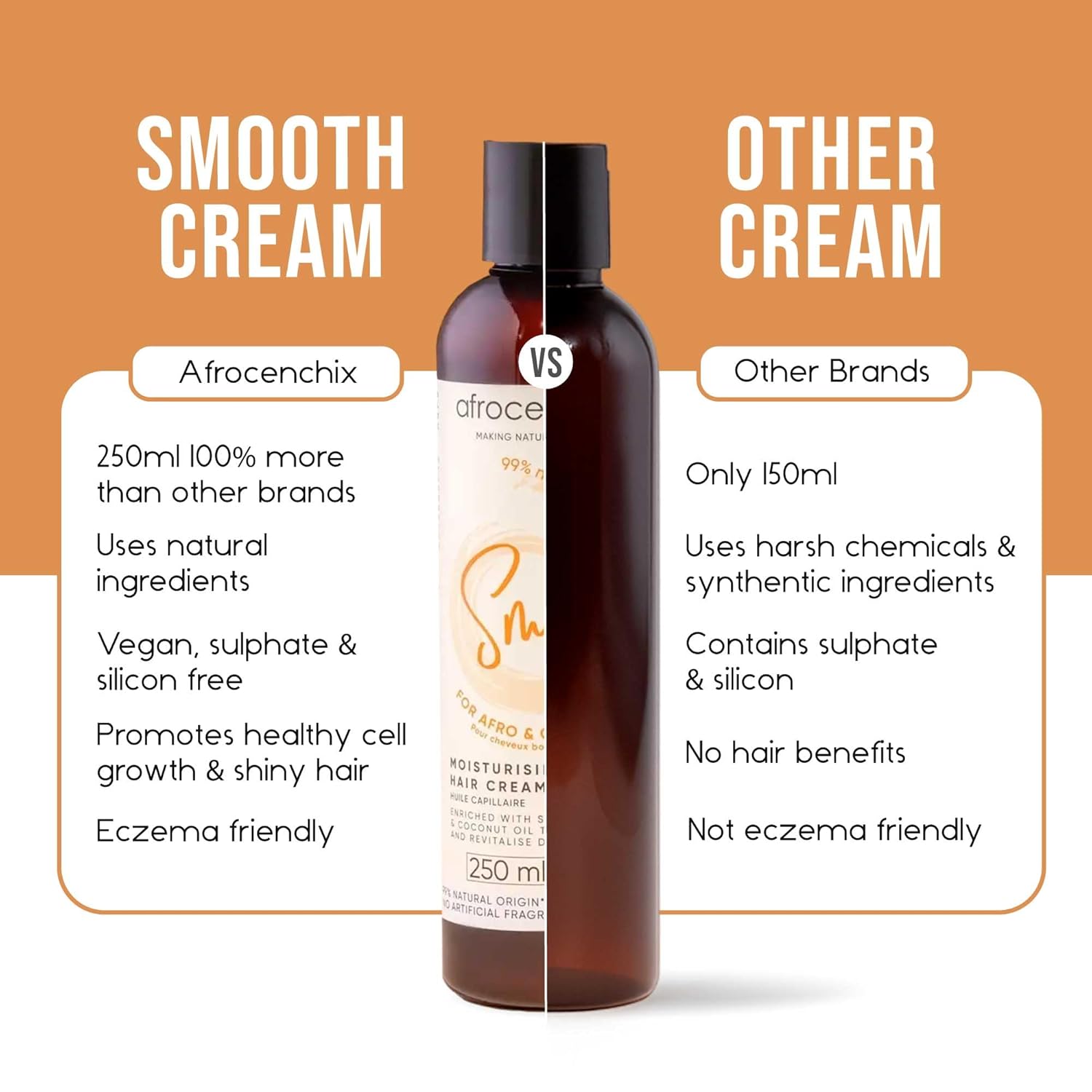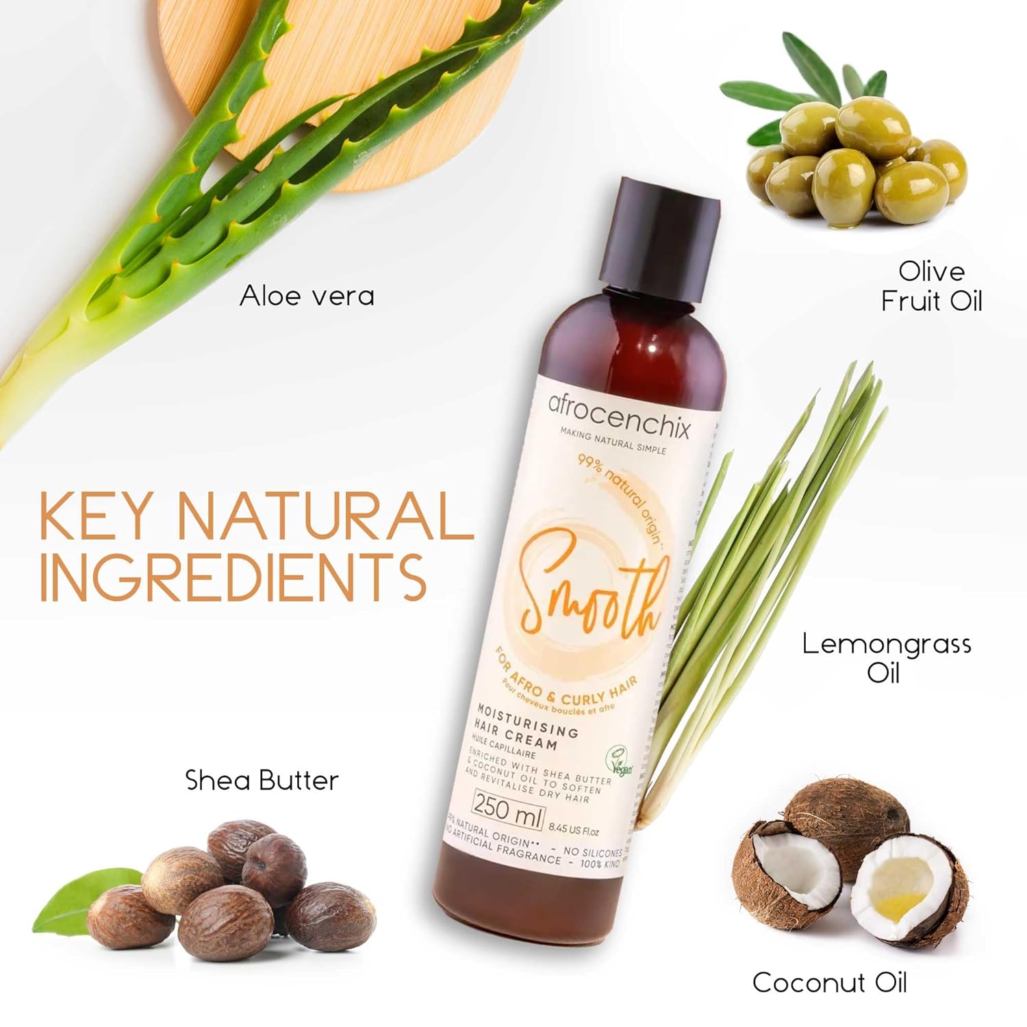 Afrocenchix Smooth Curl Cream – Natural Styling Cream for Afro & Curly Hair – Defines Curls, Adds Shine & Moisture – With Shea Butter, Coconut Oil & Aloe Vera – Vegan, 250ml (9oz)
