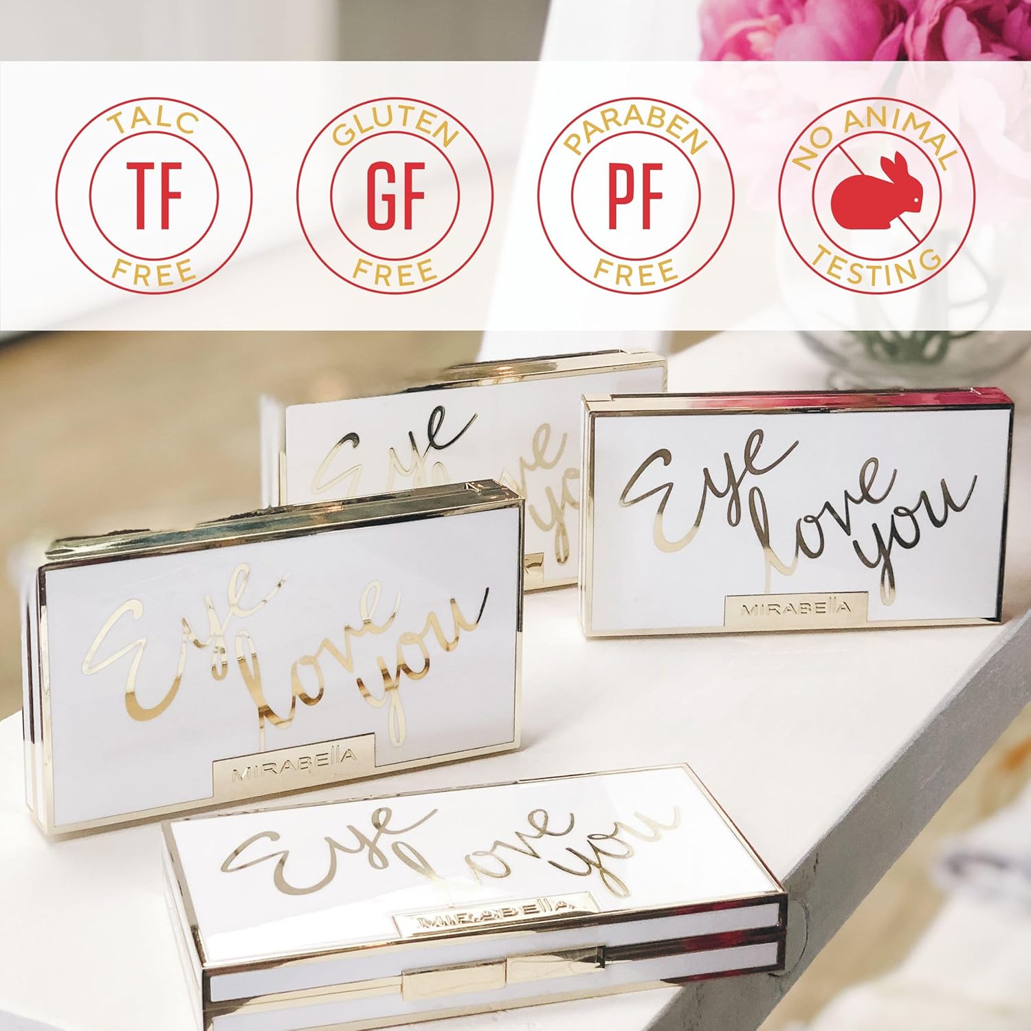 Mirabella Eye Love You Neutral Shimmer Eyeshadow Palette - Makeup Palette w/Ultra Pigmented Pressed Powders, Creamy Matte & Shimmer Pink Eyeshadow Shades - Romance