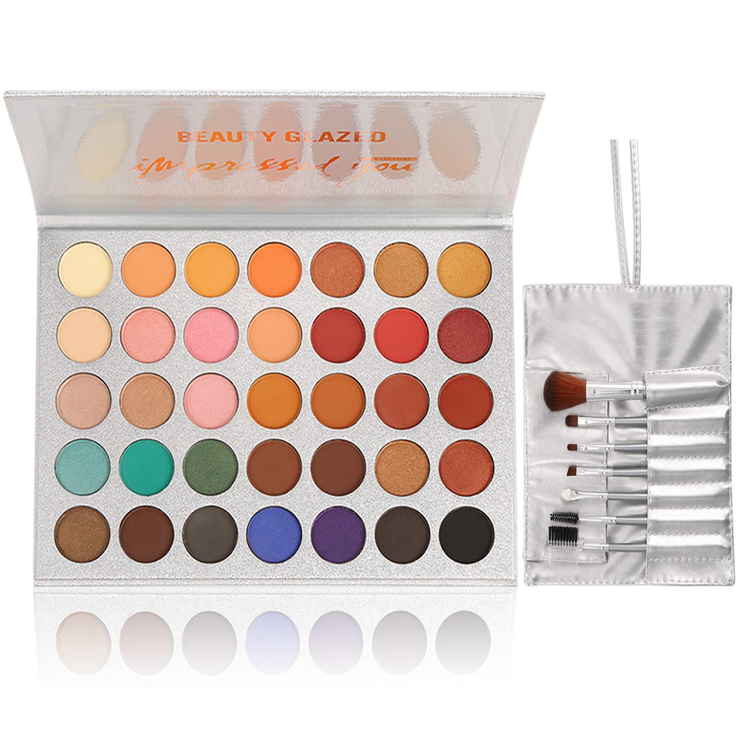 35 Colors Eyeshadow Palette with 7Pcs Makeup Brushes Set, All in One Makeup Kit Matte Shimmer Pigmented Eye Shadow Pallete Waterproof Powder Natural Nude Naked Smokey