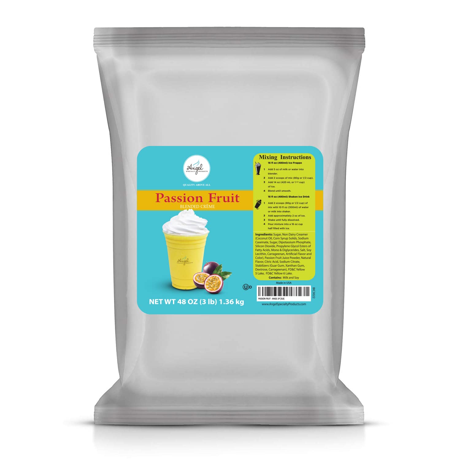 - 48 oz (3 lb) bag of Passion Fruit Blended Creme Powder Mix