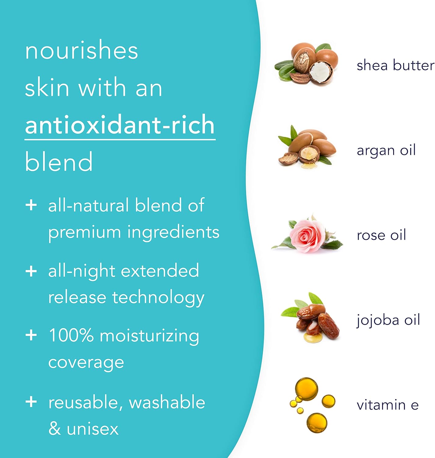 - FORMULATED WITH NATURAL INGREDIENTS: Soft gel-lined socks infused with a unique formulation of rich antioxidants including Shea Butter, Argan Oil, Rose Oil, Jojoba Oil and Vitamin E. Our blend of powerful ingredients from nature is scientifically formulated for maximum effectiveness, and is hypoallergenic, vegan, dermatologist tested, free of phthalates and parabens, cruelty free and Leaping Bunny certified.
