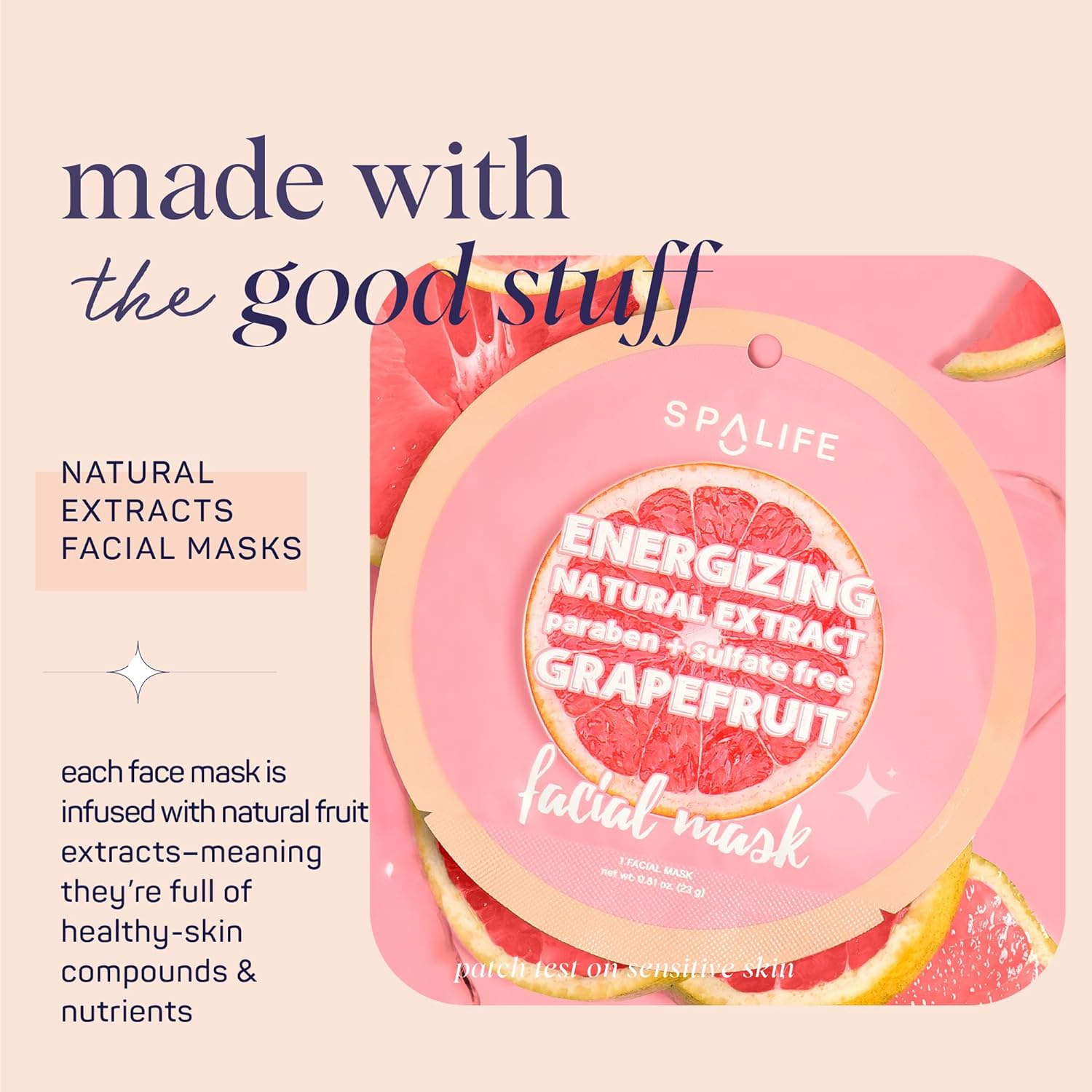 SpaLife Beauty Fruit Facial Sheet Masks 24 Pack – Face Masks Skincare Set – Hydrating Face Masks – 6 Natural Fruit Extract Formulas – Orange, Grapefruit, Coconut, Cherry, Avocado, Cucumber