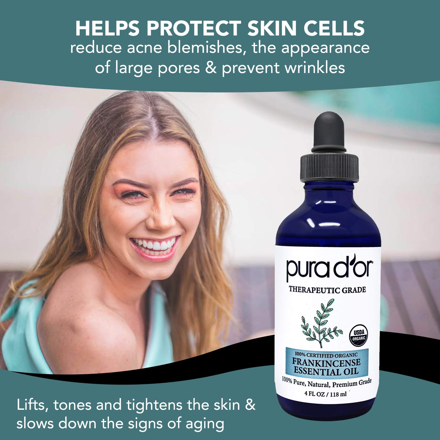 PURA D'OR ORGANIC Frankincense Essential Oil (4oz with Glass Dropper) 100% Pure & Natural Therapeutic Grade For Hair, Body, Skin, Aromatherapy Diffuser, Relaxation, Meditation, Mood, Massage, DIY Home