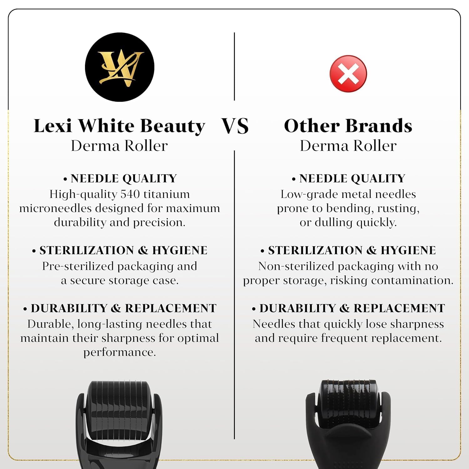 - Trusted Brand – Lexi White Beauty – As seen on top beauty platforms, Lexi White Beauty’s derma roller is designed for safe, consistent use. Protected by our 100% refund or replacement satisfaction guarantee.