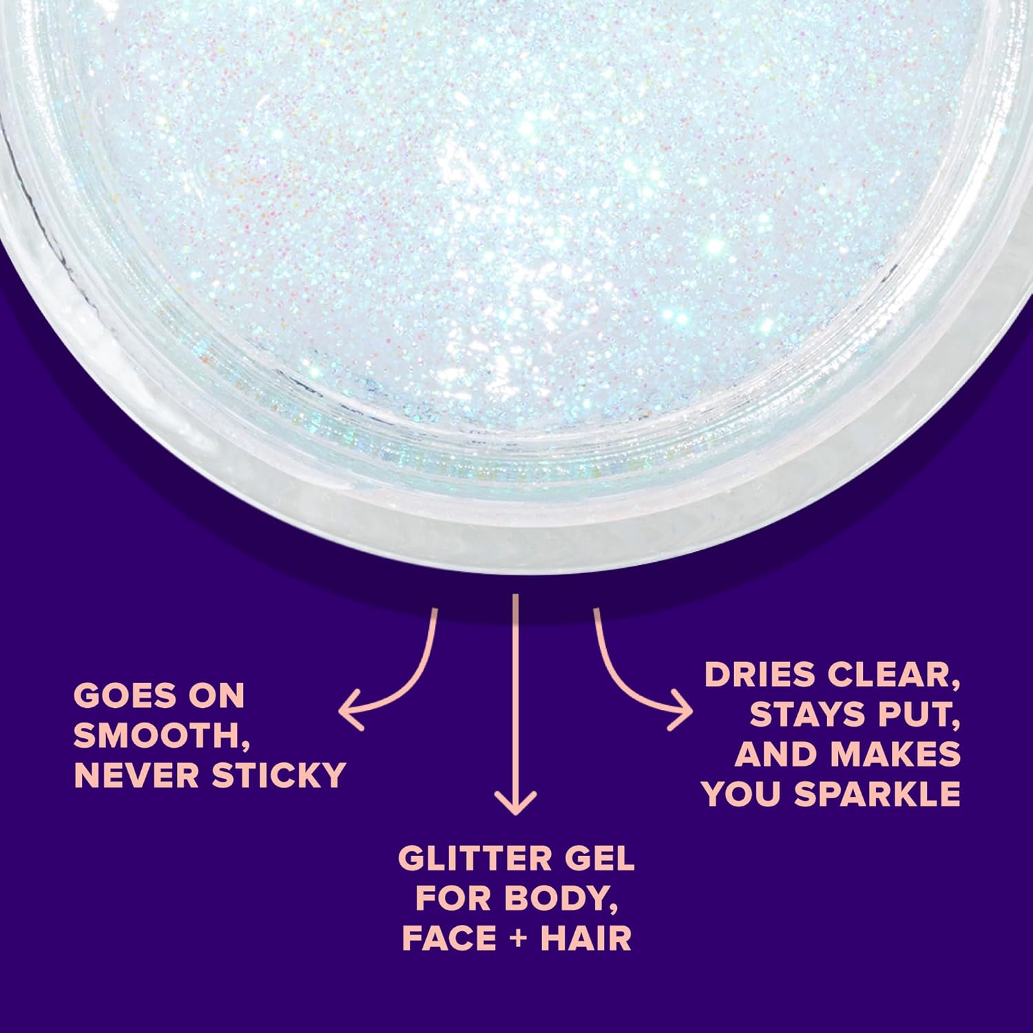 - COSMETIC-GRADE GLITTER: Fun and bright glitter gel made in multiple shades of color. This plant-based body glitter can be used on the eyes, face, body, or wherever you like! It has cosmetic-grade glitter and is safe for use on the face or skin. Available in 1.7 fl oz/ 45ml jars of Holographic Glitter Gel.
