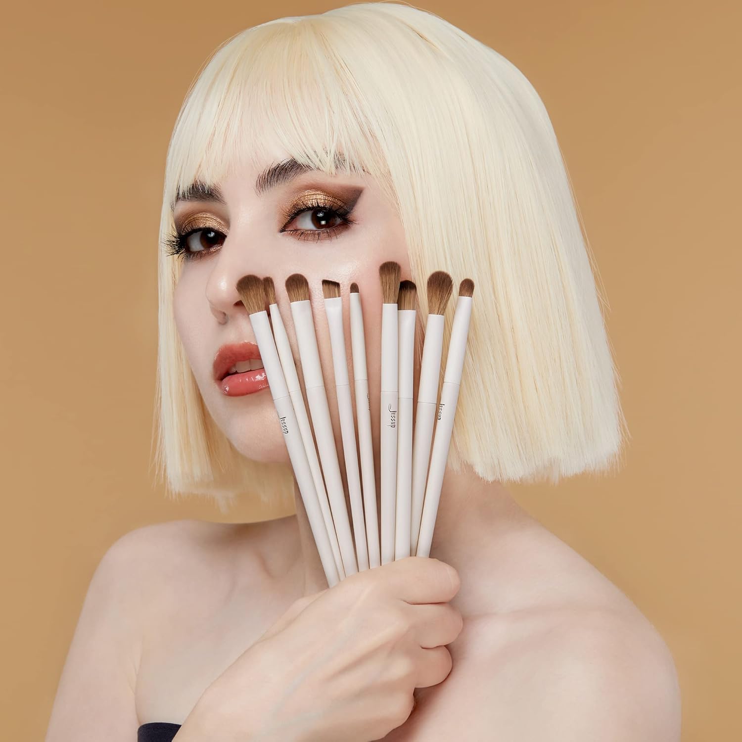 - Get your desired eye look in minutes with this all-inclusive setďźAll eye brushes have been constructed by hand and widely analyzed. We hand-picked 10pcs the most indispensable detailed eye makeup brushes: 4pcs blending brushes, 3pcs eyeshadow brushes,a precise eyeliner brush,a duo concealer brush and a highlight brush to function for a different makeup purpose to ensure youâve got all brushes necessary to make perfect eye makeup.