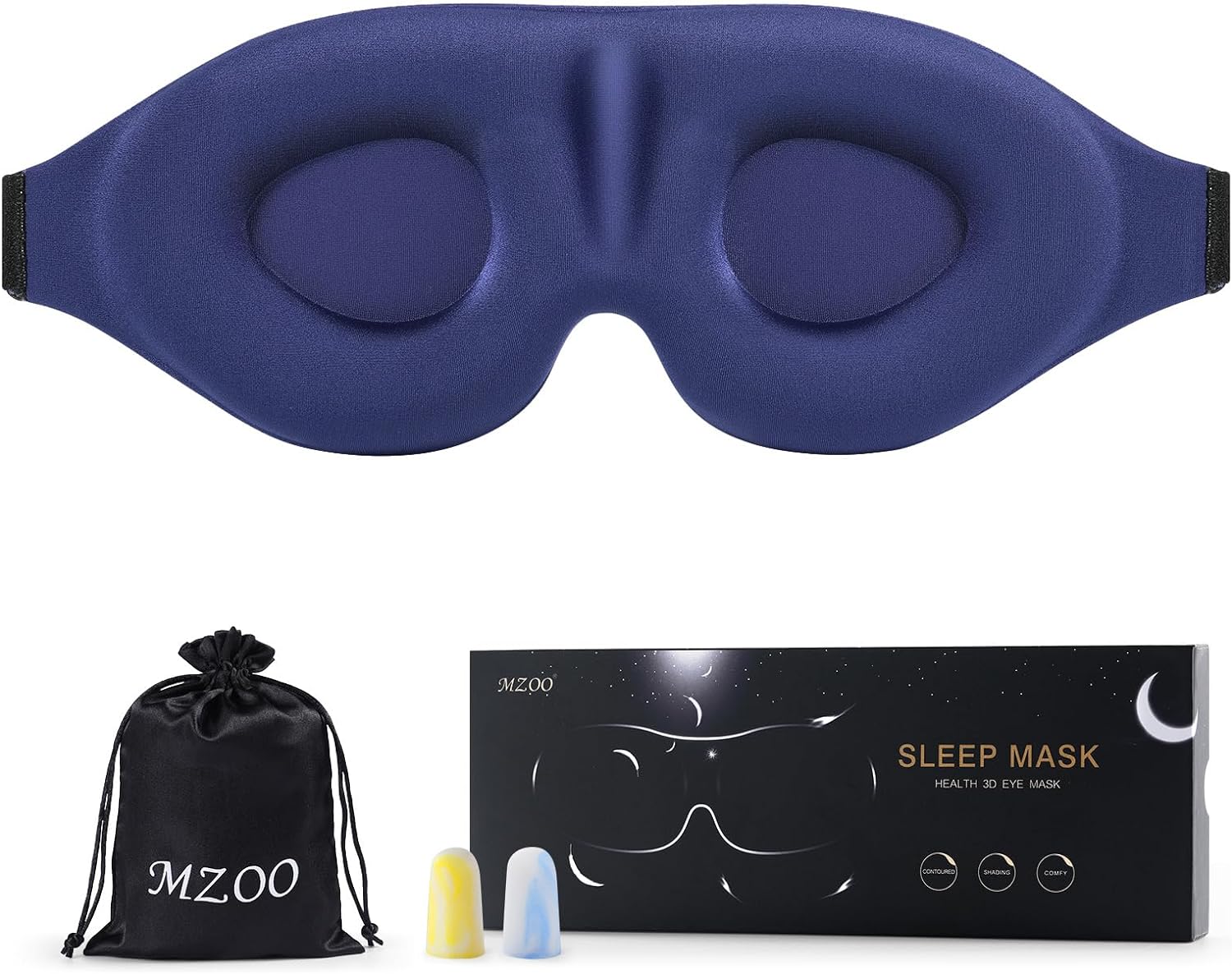 MZOO Luxury Sleep Eye Mask for Side Sleeper Men Women, Zero Eye Pressure 3D Sleeping Mask, Light Blocking Patented Design Night Blindfold, Soft Eye Shade Cover for Travel, Blue
