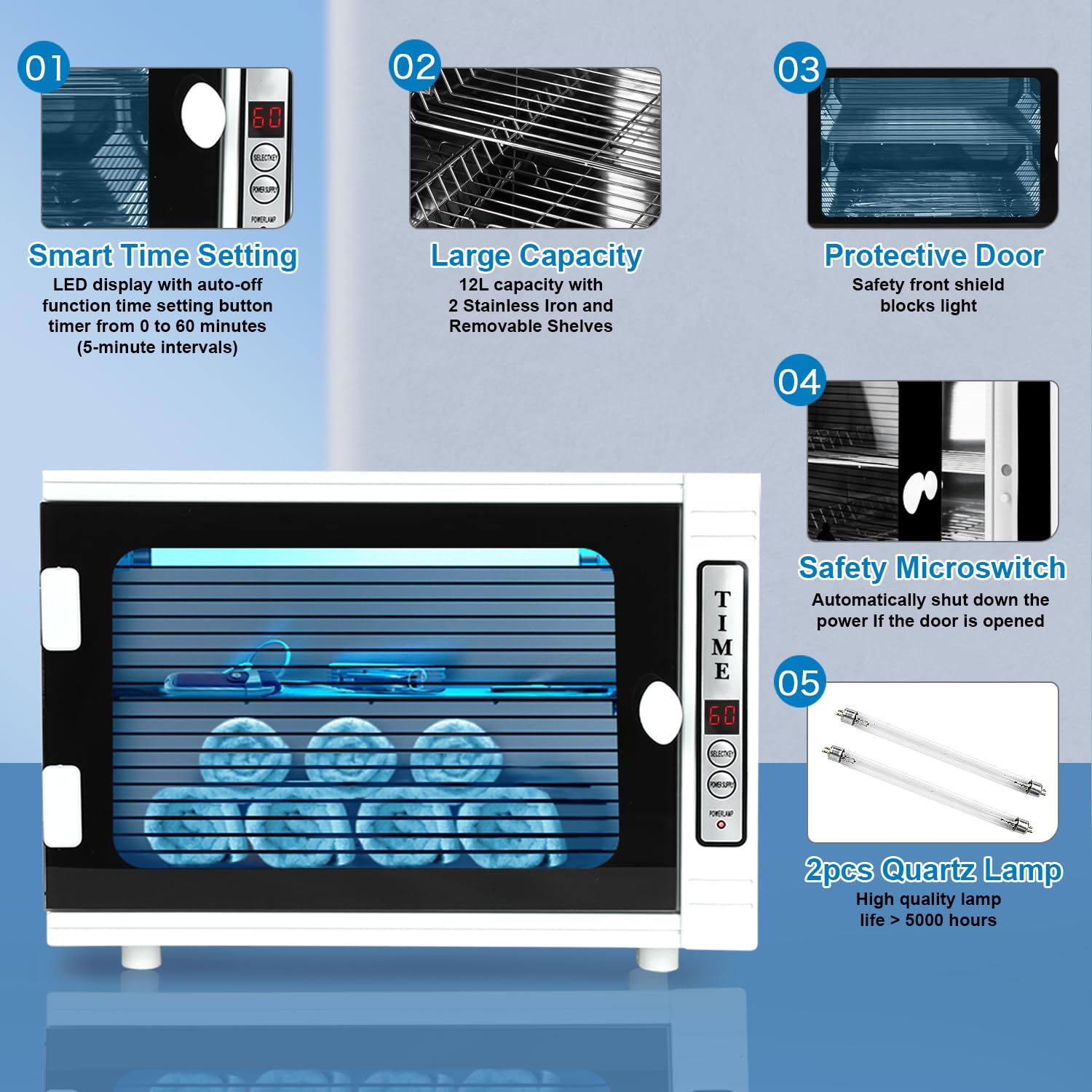 Nail Tool Cleaning Machine, 12L High Capacity Multi-Functional Nail Cleaner Box Manicure Tool Cleaning Cabinet Salon Equipment for Spa Beauty Home Metal Tools With Replaceable Lamp