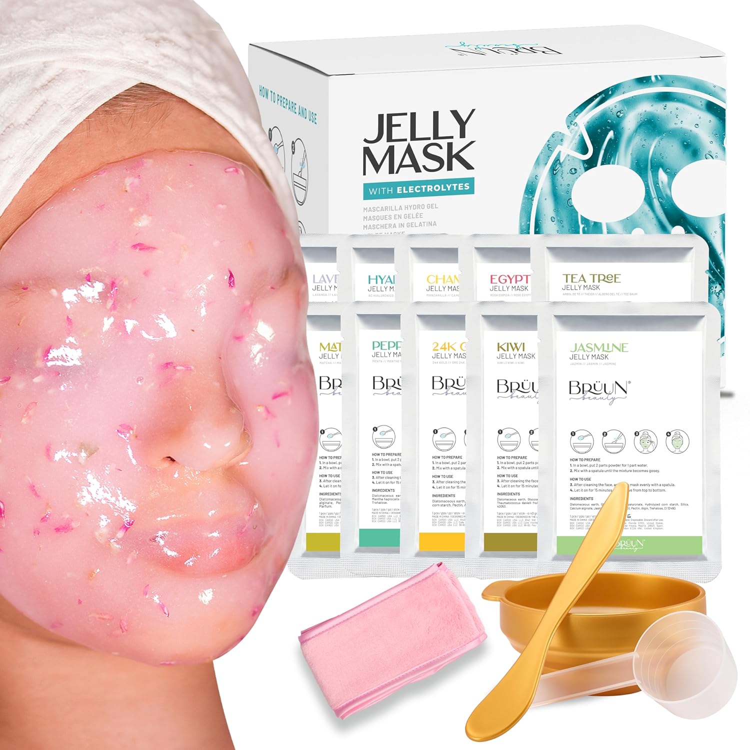 Peel-Off Jelly Mask Premium Modeling "Rubber Mask" Spa Set - 10 Treatments (24k Gold, Lavender, Kiwi, Peppermint, Egyptian Rose, Matcha, Chamomile, Tea tree, Jazmine)
