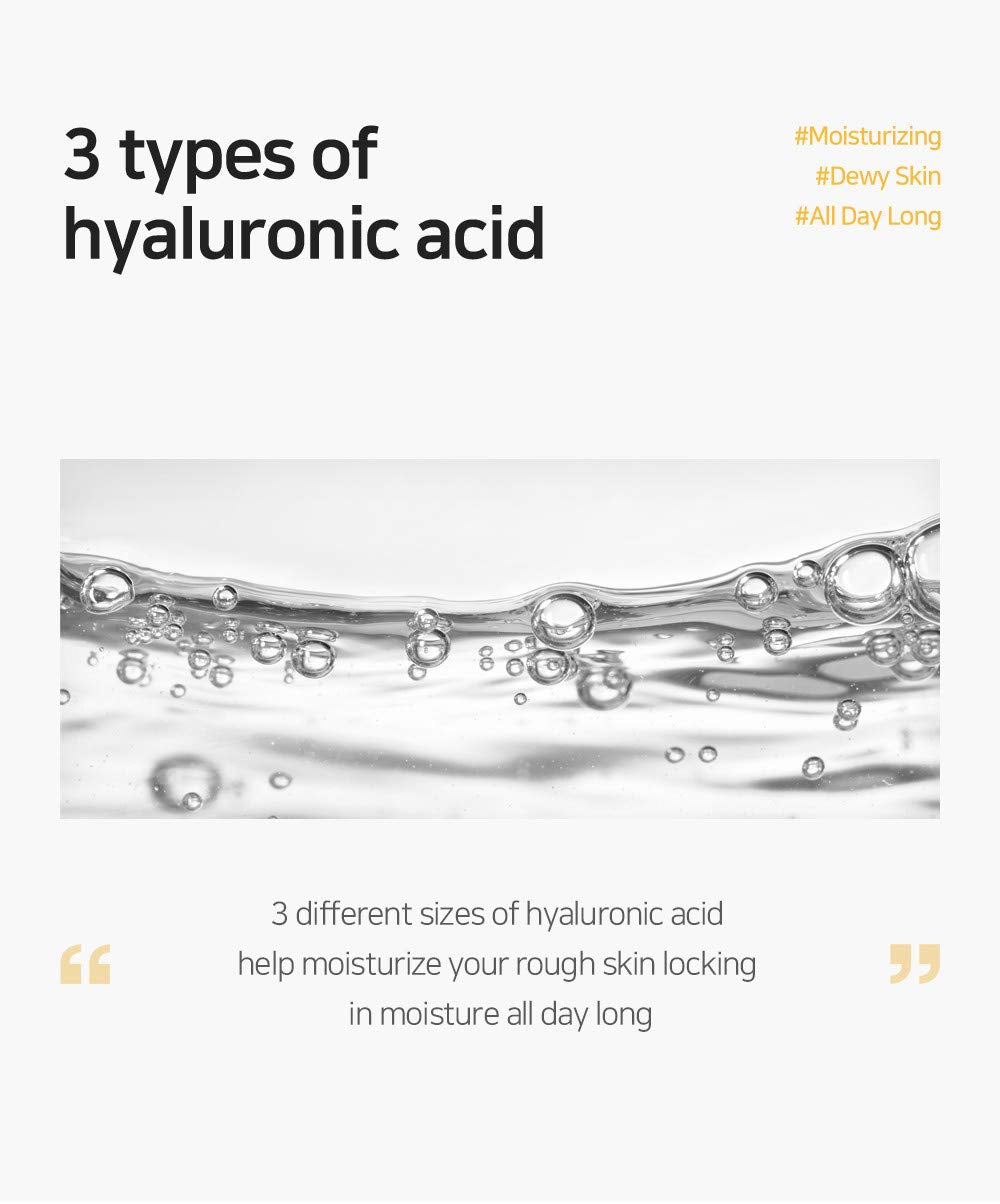 - 3 HYALURONIC ACIDS: 3 layers of hyaluronic acid replenishes moisture deep into the skin, prevents moisture loss from the skin surface, and forms a moisture barrier to hydrate and protect your skin.