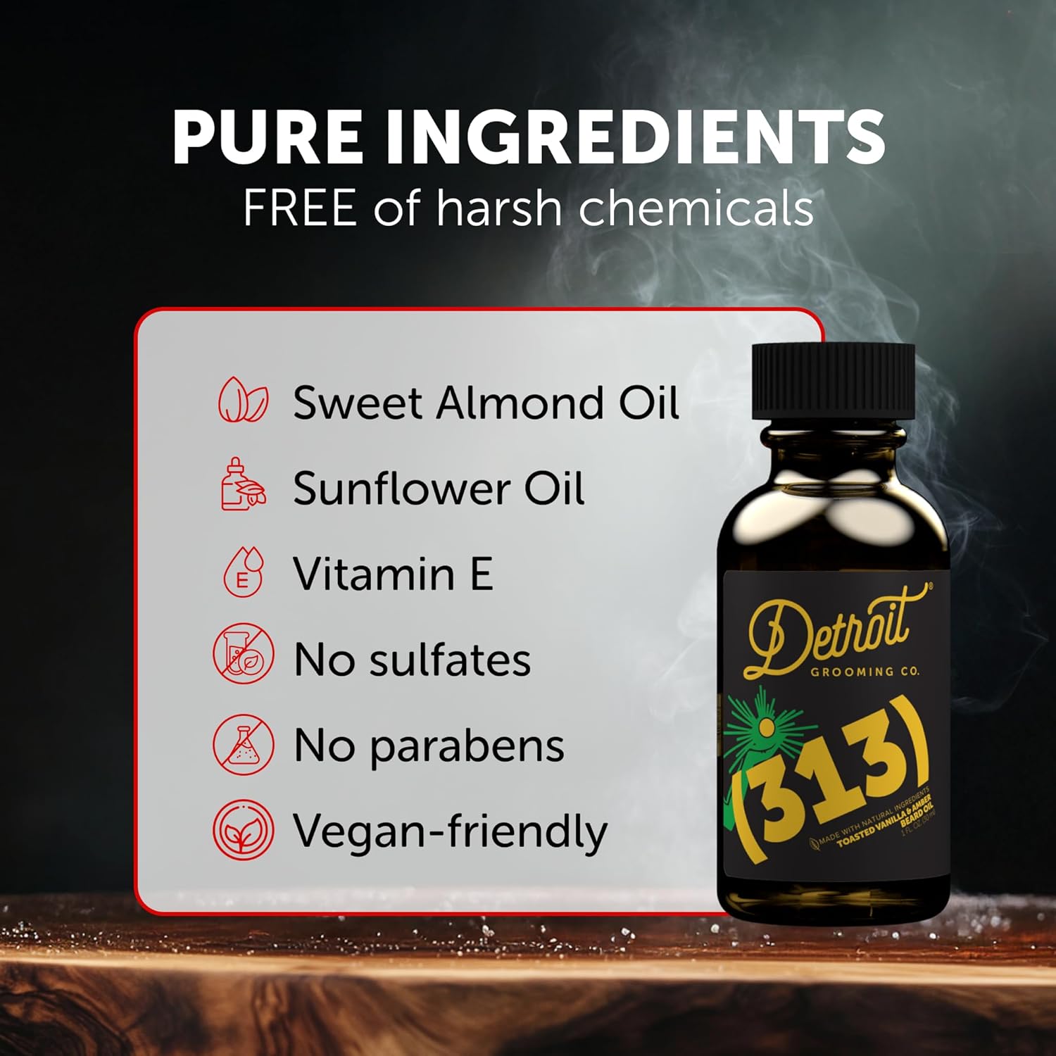 Detroit Grooming Beard Oil | Hydrating & Nourishing Formula with Sweet Almond & Vitamin E | Toasted Vanilla & Amber • 313 Scent (1 oz)