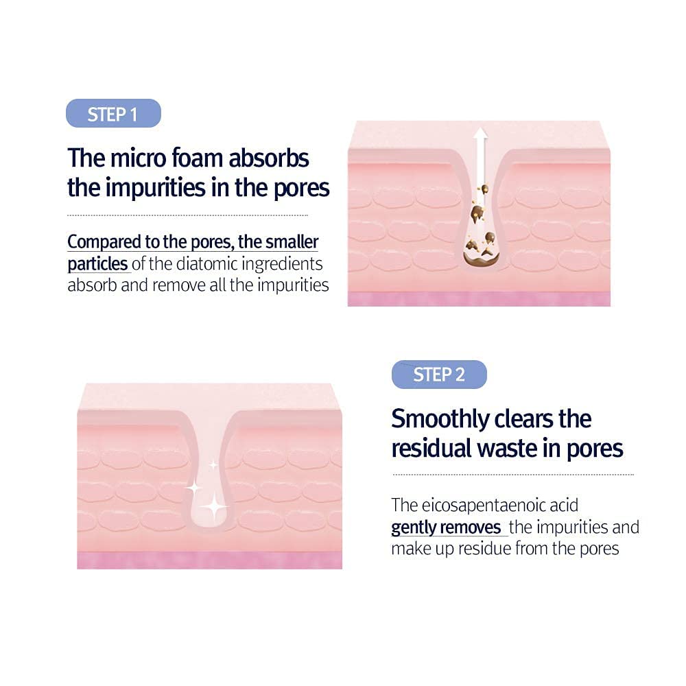 - Deep Cleansing: The 2-step pore deep cleansing foam helps remove impurities and dead skin cells from pores using micro foam particles and AHA ingredients.