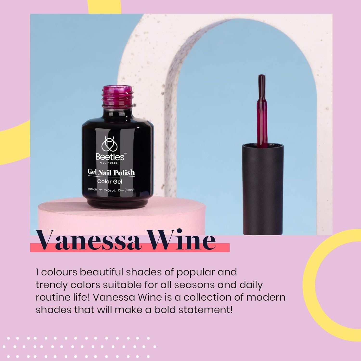 - ăPersonal Styleă:Beetles Gel Nail Polish Vanessa Wine Pruple Burgundy Red Color,elegant shades of popular and trendy colors suitable for all seasons and daily routine life! Color Number: ia238