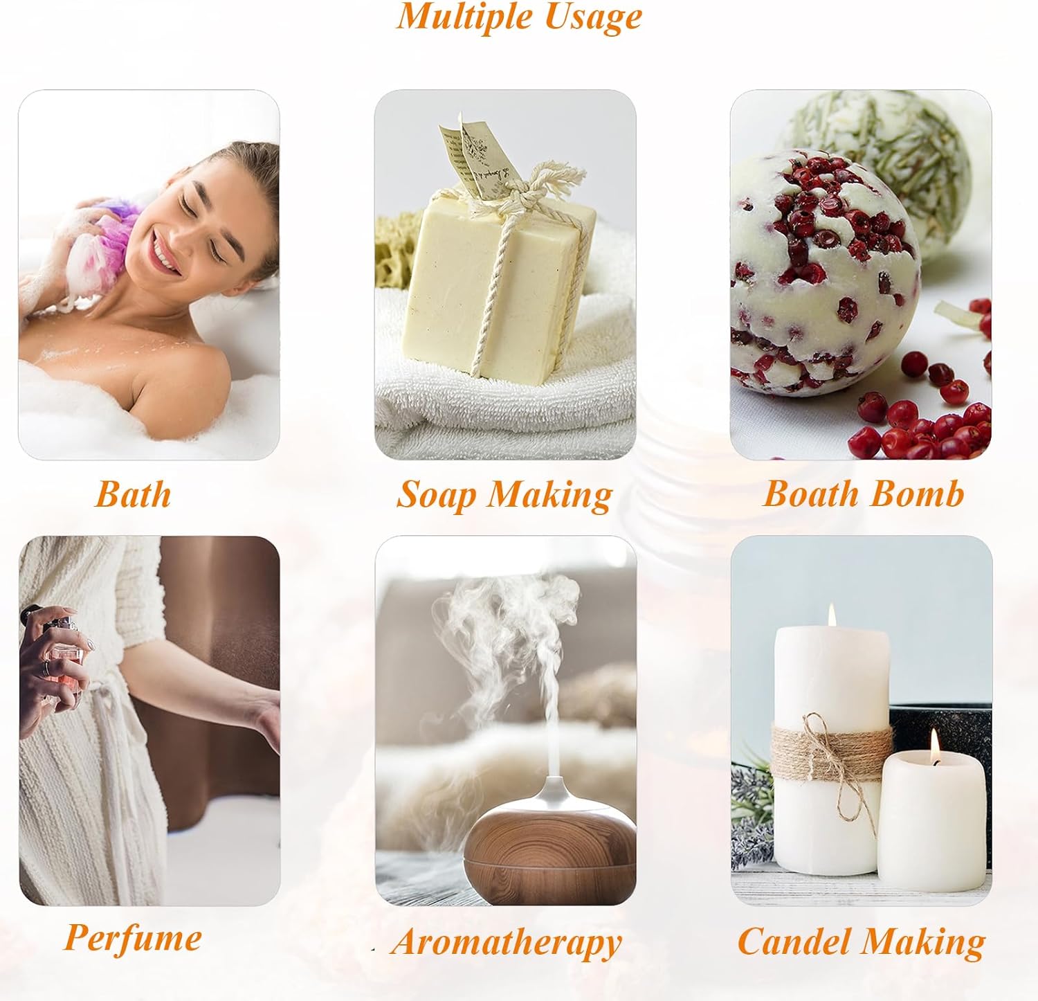- Artisan Crafting & Ambiance Creation 1. Soy candle blend: 10ml oil per 500g wax with cotton wick 2. DIY solid perfume base with beeswax/bergamot 3. Diffuser use: 5 drops for yoga studio ambiance