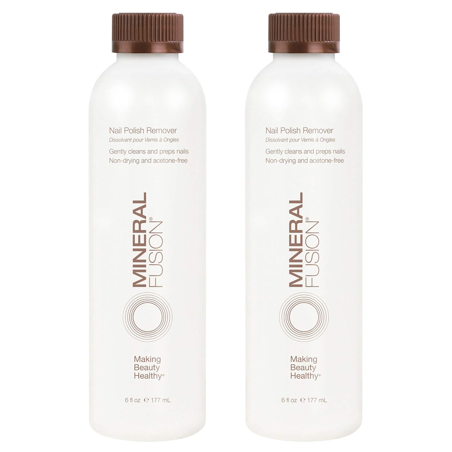 Mineral Fusion Acetone Free Nail Polish Remover, Gentle, Non-Drying, Regular & Gel Polish, 6 fl oz (2 Pack), Vegan & Cruelty-Free Nail Care for Women and Men