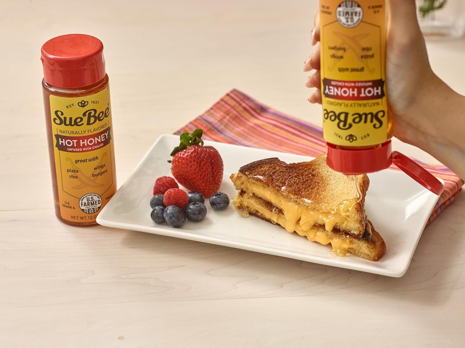 Sue Bee Naturally Flavored Hot Honey Chili Infused For Ribs, Wings, Burgers, 12 oz