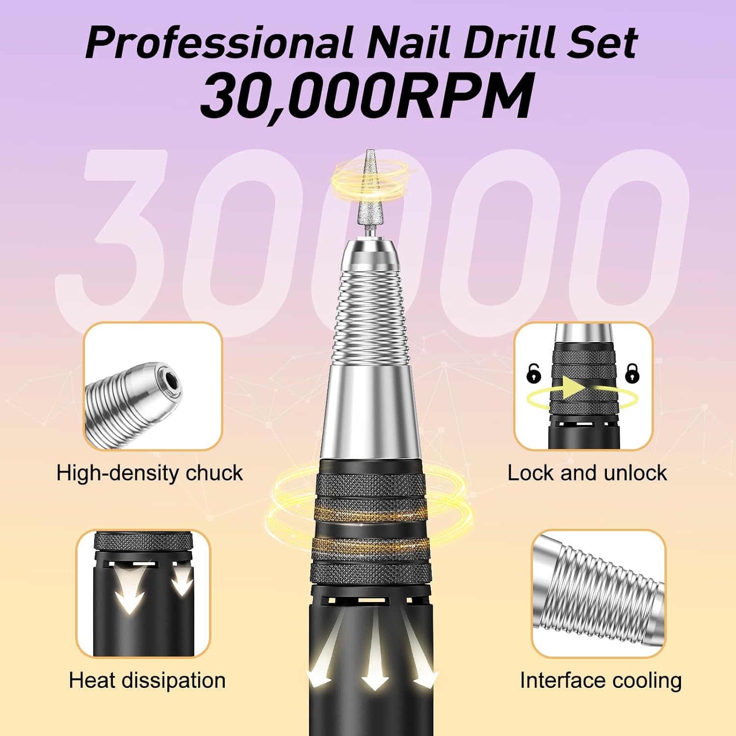 JIASHENG Professional Nail Drill, 30000rpm Nail Drill Machine for Nail Tech Supplies, Acrylic Electric Efile Nail Drill for Polishing Shaping Removing Acrylic Nails Poly Nail Gels