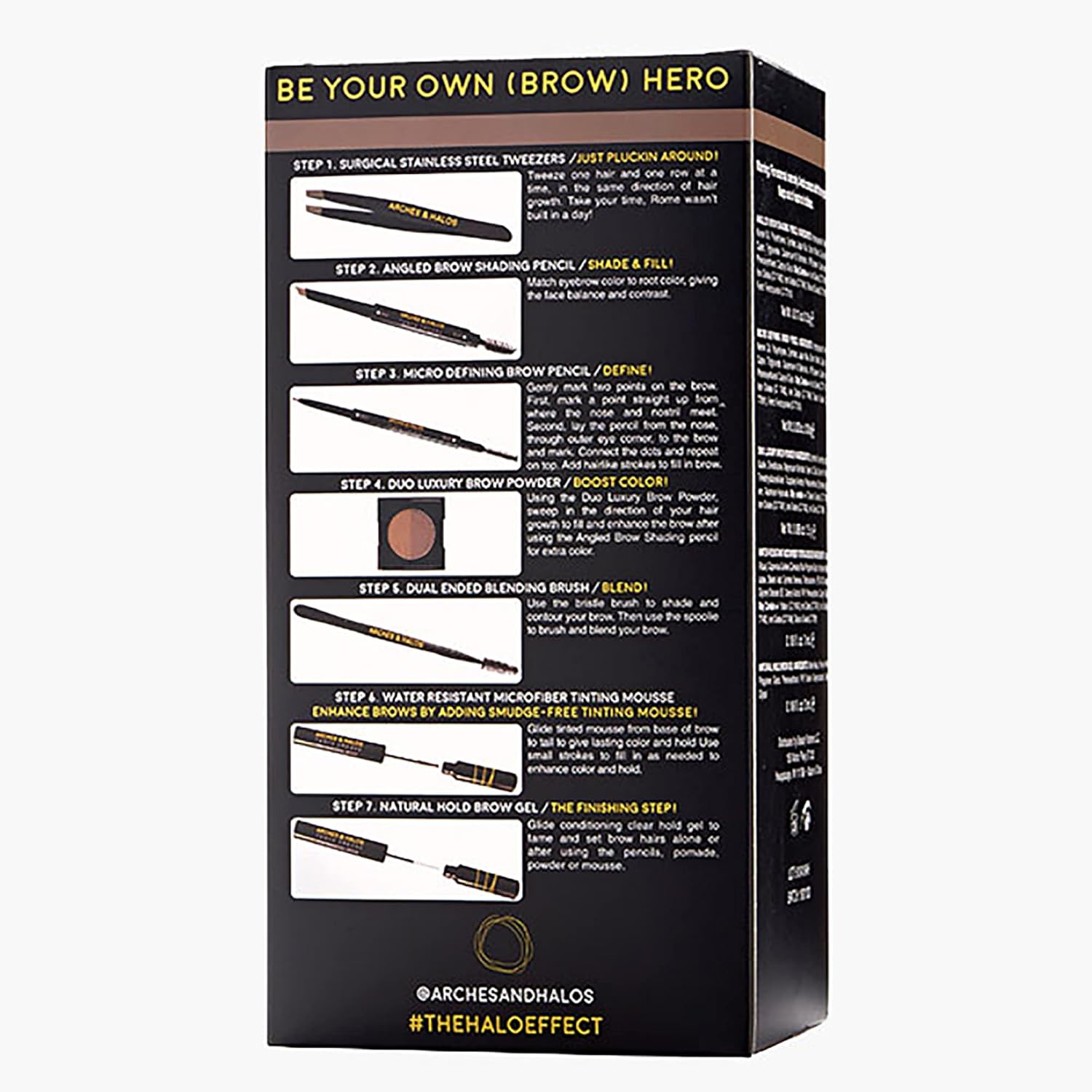 Arches & Halos - Ultimate Brow Hero Kit - Eyebrow Styling Makeup Kit, Pencil, Gel, Shading, Powder, Mousse, Natural and Bold Precise Brow Shaper - Hypoallergenic, Vegan - 7 Pc Kit, Medium