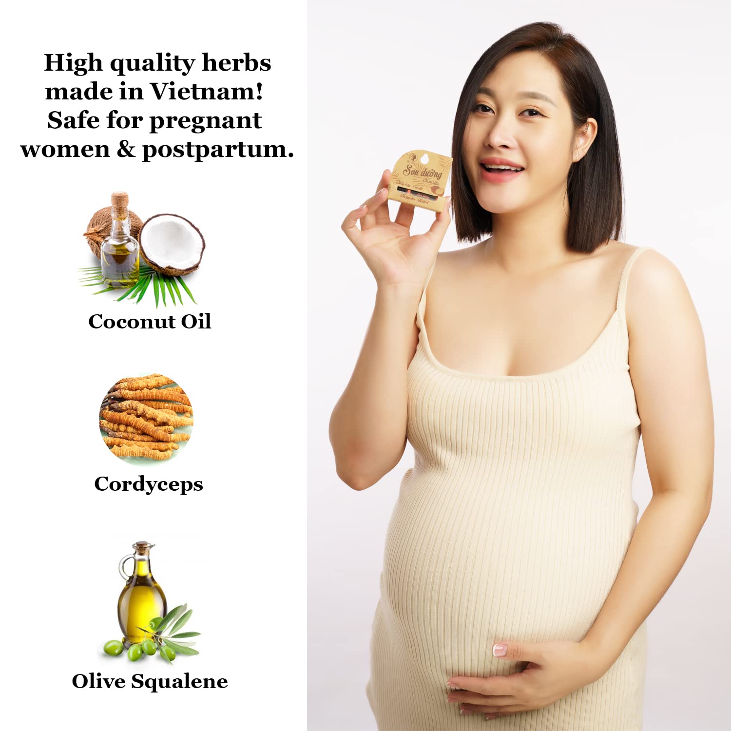 - π High quality ingredients made in Vietnam such as coconut oil, vitamin E, almond, jojoba, Squalene olive, German chamomile extract, cordyceps. Especially, cordyceps must be the top grade in Vietnam to ensure the most abundant nutrients.