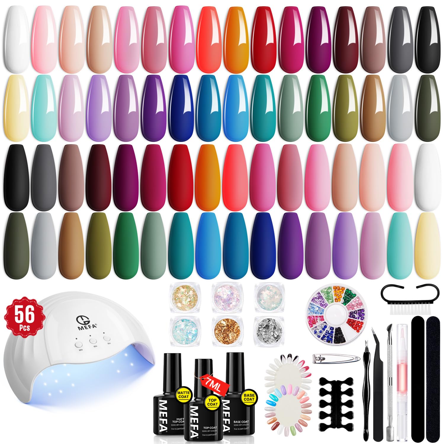 MEFA 32 Colors Gel Nail Polish Kit with U V Light, 54 Pcs Nude Pink Popular Gel Nail Polish Starters Set Essential Manicure Tools Nails Art Decorations DIY Gifts
