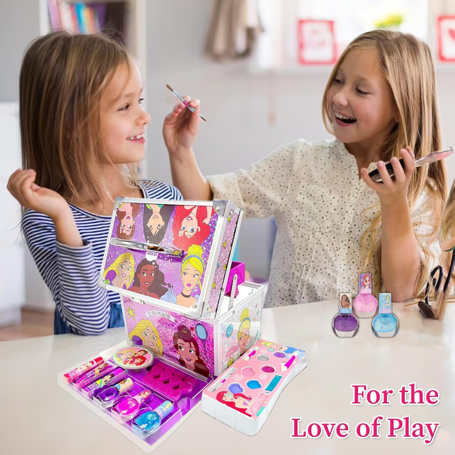 Disney Princess Train Case Girls Beauty Set, Kids Makeup Kit for Girls, Real Washable Toy Makeup Set, Play Makeup, Pretend Play, Party Favor, Birthday, Toys Ages 3 4 5 6 7 8 9 10 11 12