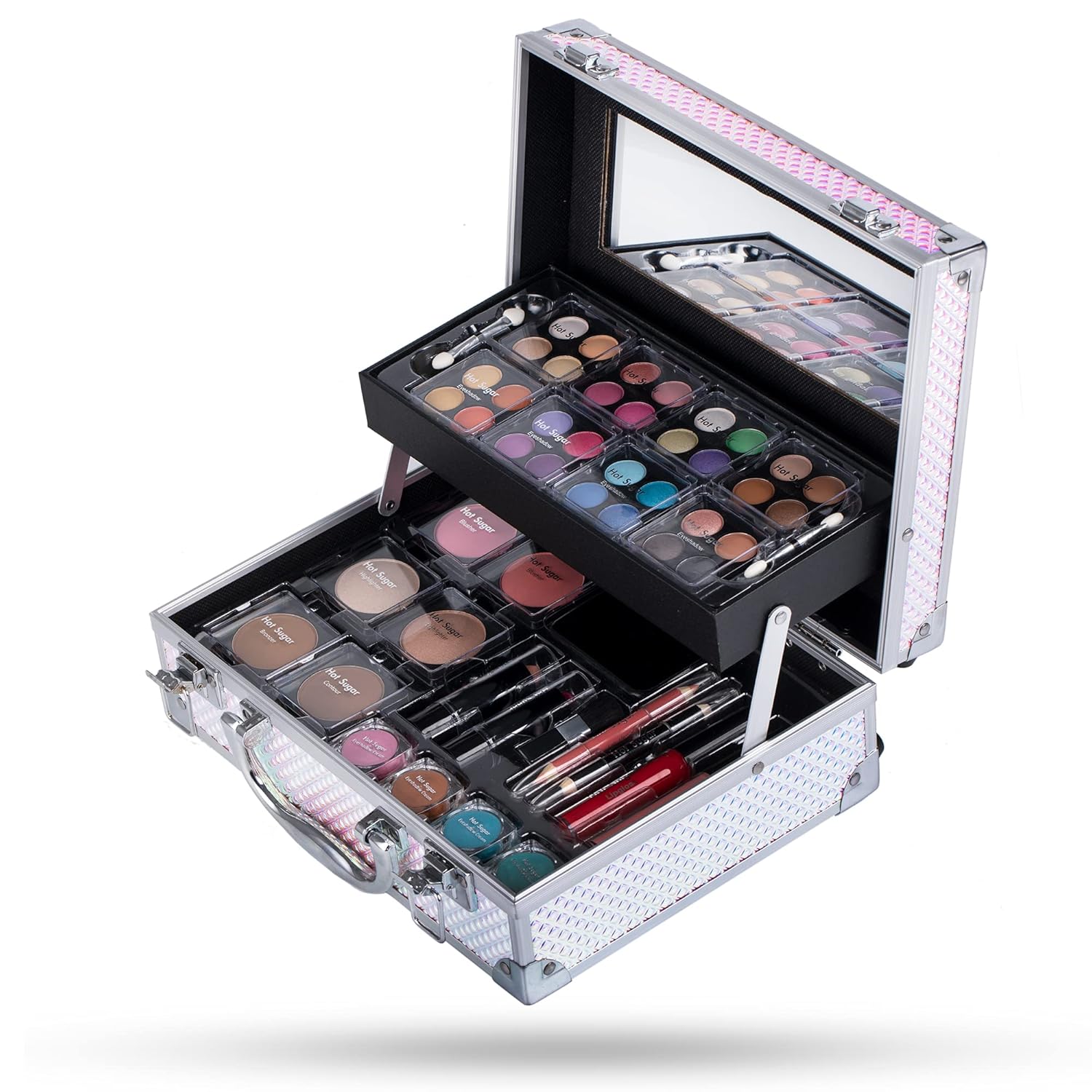 Hot Sugar Makeup Kit for Women Full Kit Teen Girls Starter Cosmetic Gift Set with Cute Mermaid Train Case Includes Pigmented Eyeshadow Palette Blush Lipstick Lip Pencil