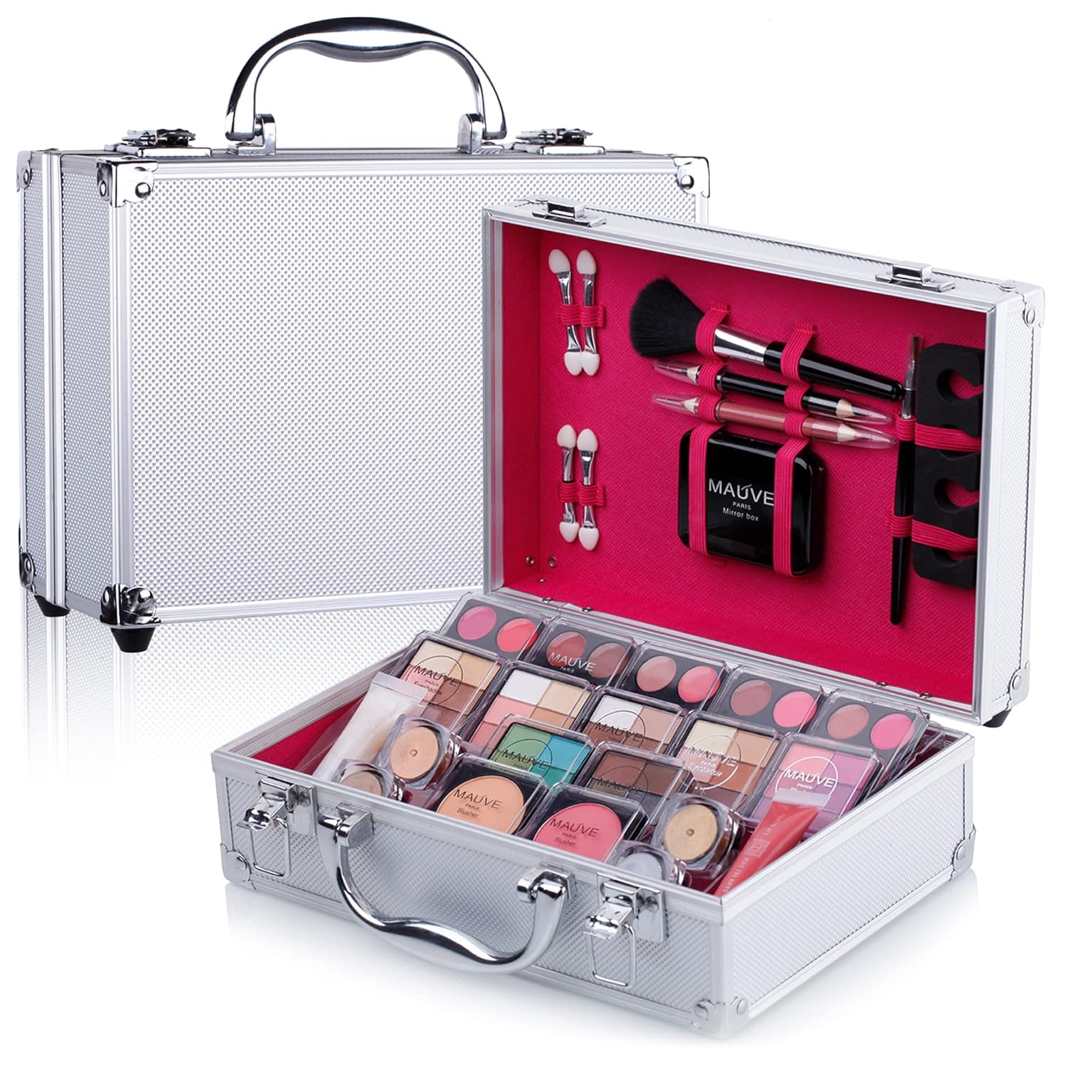 - Makeup Kit for Starter: This compact makeup kit is suitable for beginners or profession, including 7 eyeshadow quads (each with 6 colors of eyeshadow), 4 eyeshadow cream, 5 Lip Balm (each with 4 colors), 2 powder blushes for all skin tones, 2 lip glosses, 1 dual-sided lip liner and 1 dual-sided eyeliner, 4 dual-sided sponge tip applicators, 1 blush brush and 1 lip brush, 1 mirror compact, 1 toe seperato and 1 aluminum case