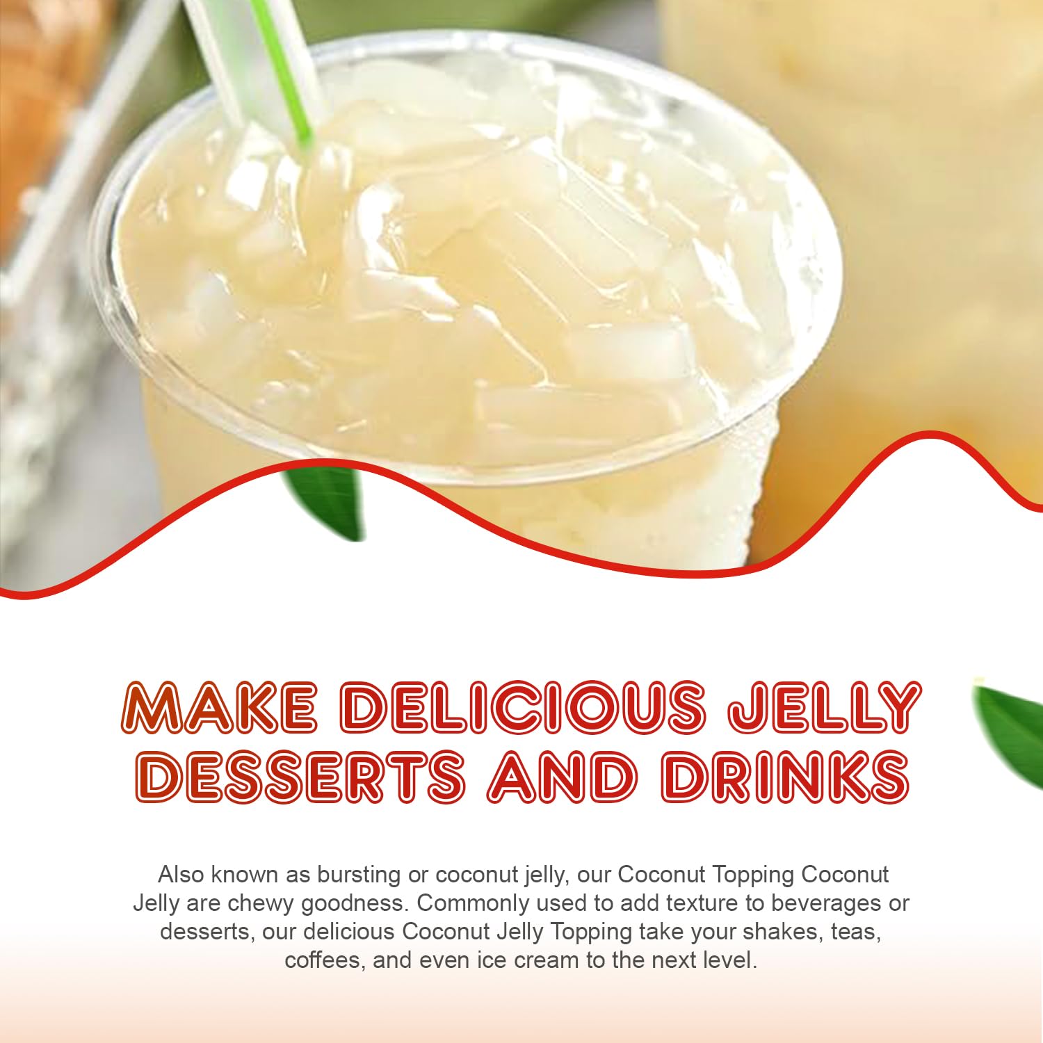 - ๐๐ฎ๐ญ๐ซ๐ข๐ญ๐ข๐จ๐ฎ๐ฌ ๐๐ง๐ ๐ซ๐๐๐ข๐๐ง๐ญ๐ฌ: Our nata de coco jelly topping is made from the inner layer of coconut meat, making it delicious and nutritious. The coconut boba tea jelly topping retains many vitamins, minerals, and fiber inherent to coconut, making it a healthier option than many artificial or processed toppings.