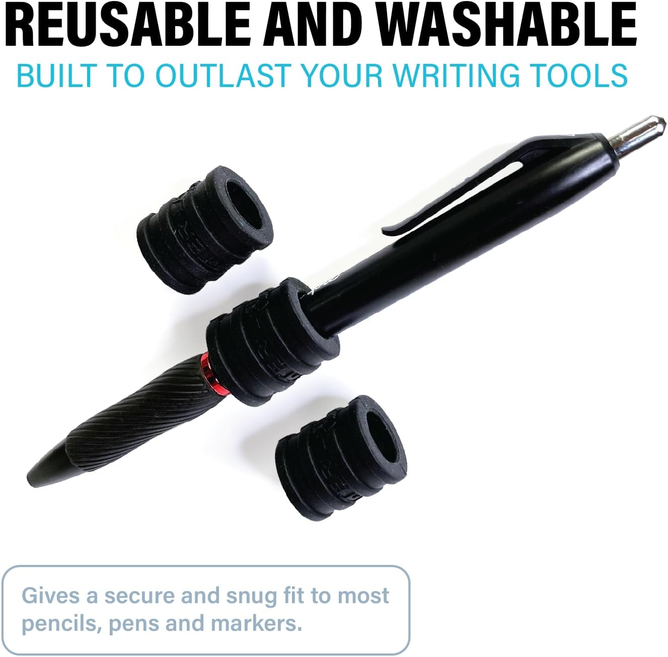 - FITS MOST WRITING TOOLS: Our innovative grip technology accommodates most pens, pencils, and markers up to 0.5 inches in diameter. Once installed, your writing tool will not slip or fall out of the holder.