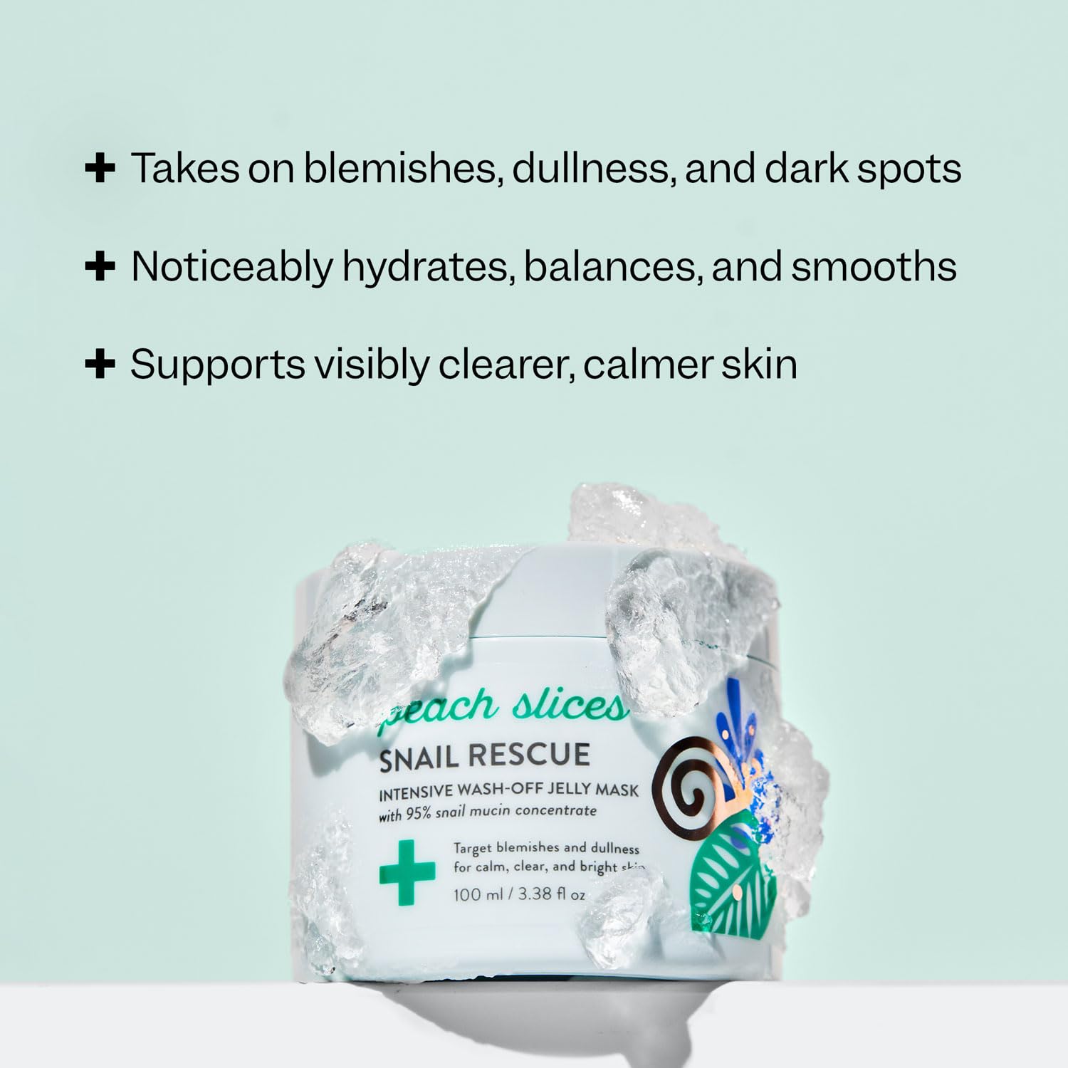 Peach Slices | Snail Rescue Intensive Treatment Wash-Off Face Mask | 95% Snail Mucin | For Dark Spots & Blemishes | Refreshing & Calming Mask | Clear, Radiant, & Hydrated Skin | Skin Care | 3.38 oz